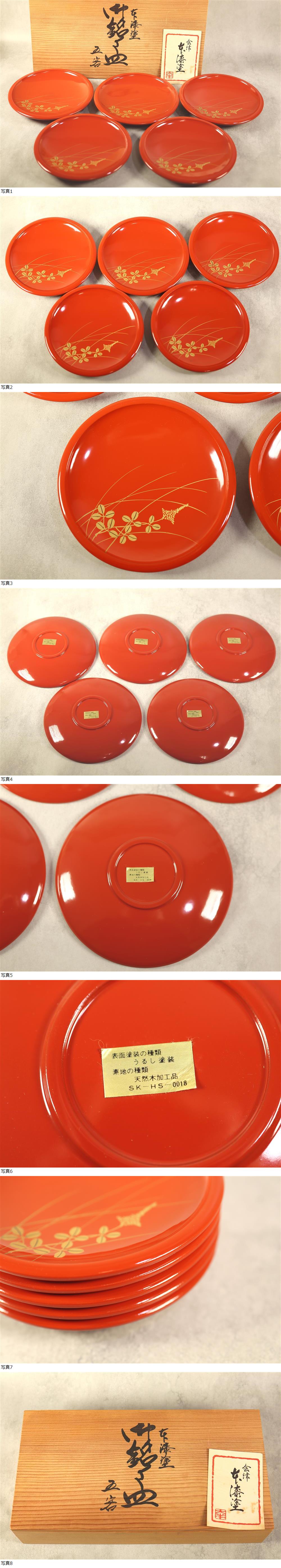 本漆塗 御銘々皿 5客セット 朱色 萩 絵 漆器 平皿 食器 共箱 ⑬ の出品です。 ★サイズ感: 直径約15cm 高さ約2cm ★商品状態:長期保管品になります。詳しい状態は写真にてご確認下さい。 ★配送方法 :ゆうパック80サイズにて発送いたします。 ★完品をお求めの方は入札をご遠慮ください。 ★入金確認後、3日以内に発送いたします。 ★写真には写しきれない小キズやスレ等あるものとお考え下さい。 ★ご使用のモニター設定により色味が異なる場合があります。 ★ノークレーム・ノーリターンでお願いします。 ★ご入札後3日以内に決済を完了出来る方のみご入札下さい。