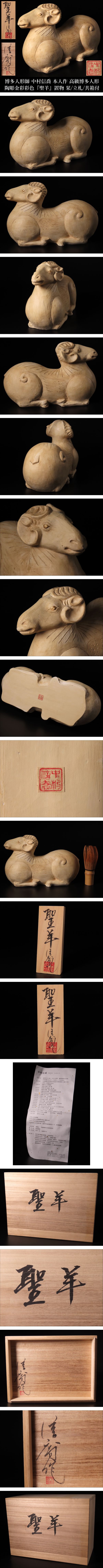 【ONE'S】博多人形師 中村信喬 本人作 高級博多人形 陶彫金彩彩色 『聖羊』 幅22.5cm 置物 栞/立札/共箱付 百貨店購入品 伝統工芸 | |||