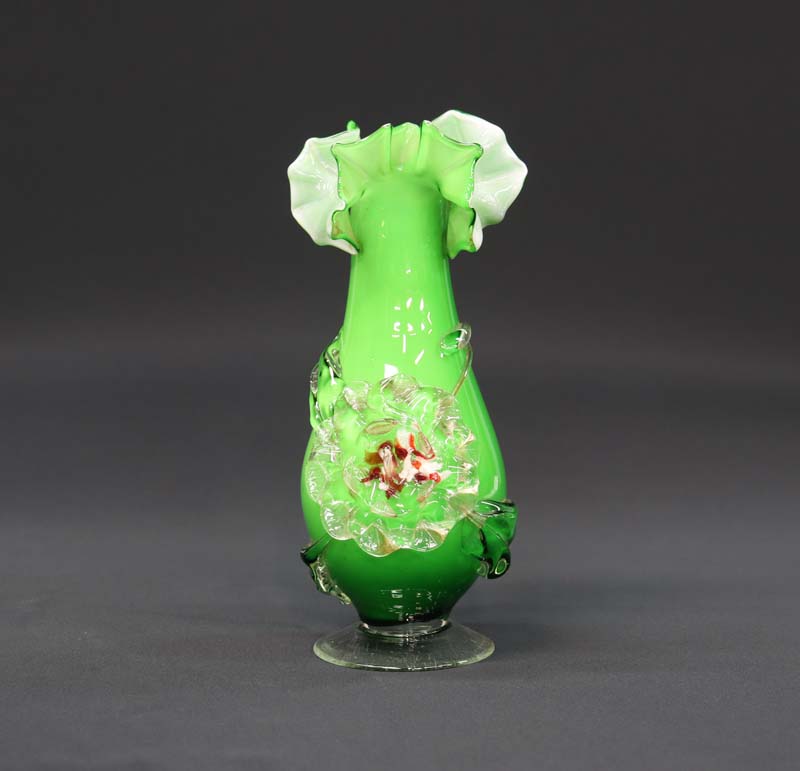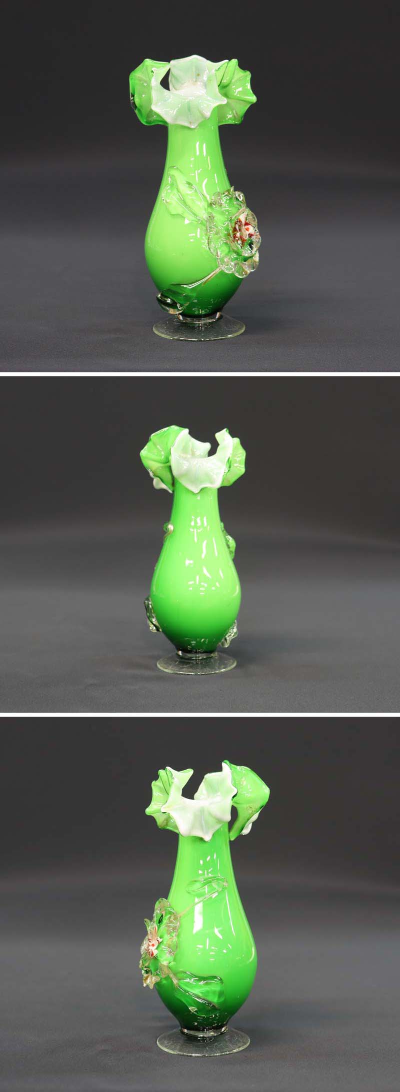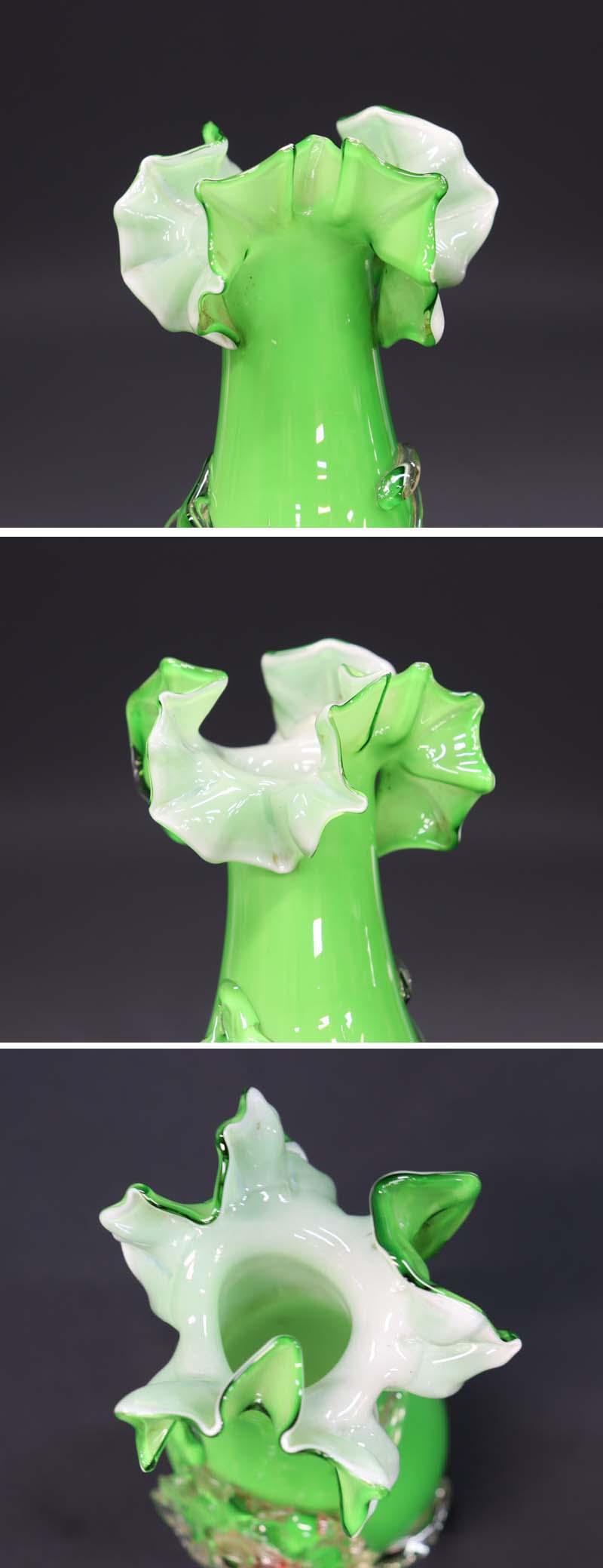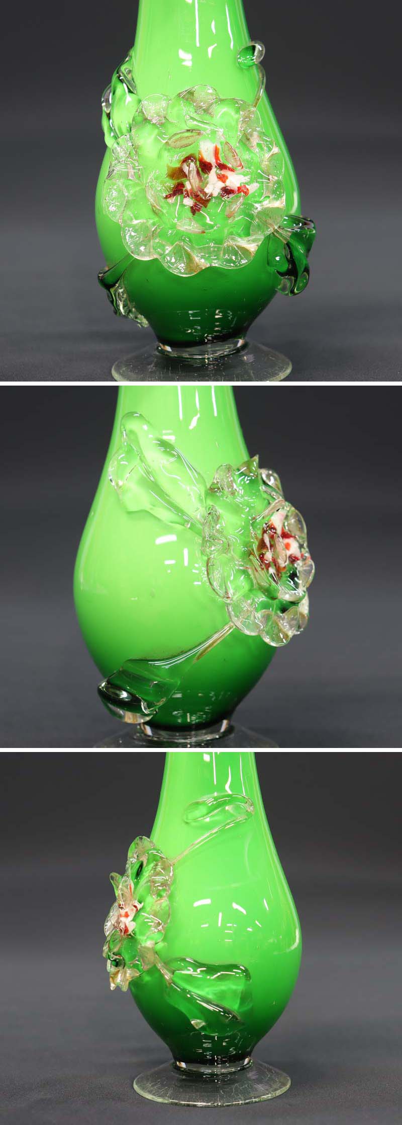 透明ガラスの花のフチに細かいホツレが1ヵ所ある程度で良い状態です (画像下から2枚目参照)。