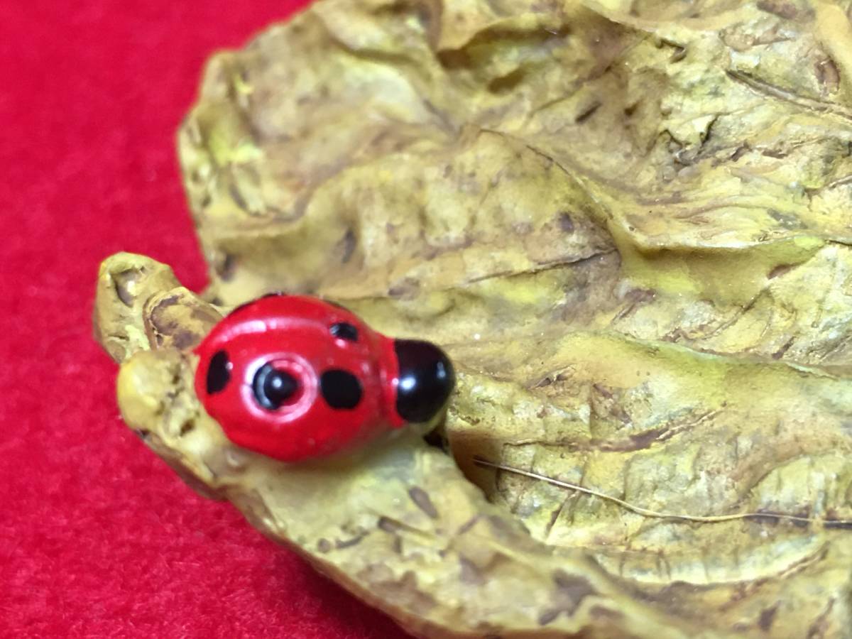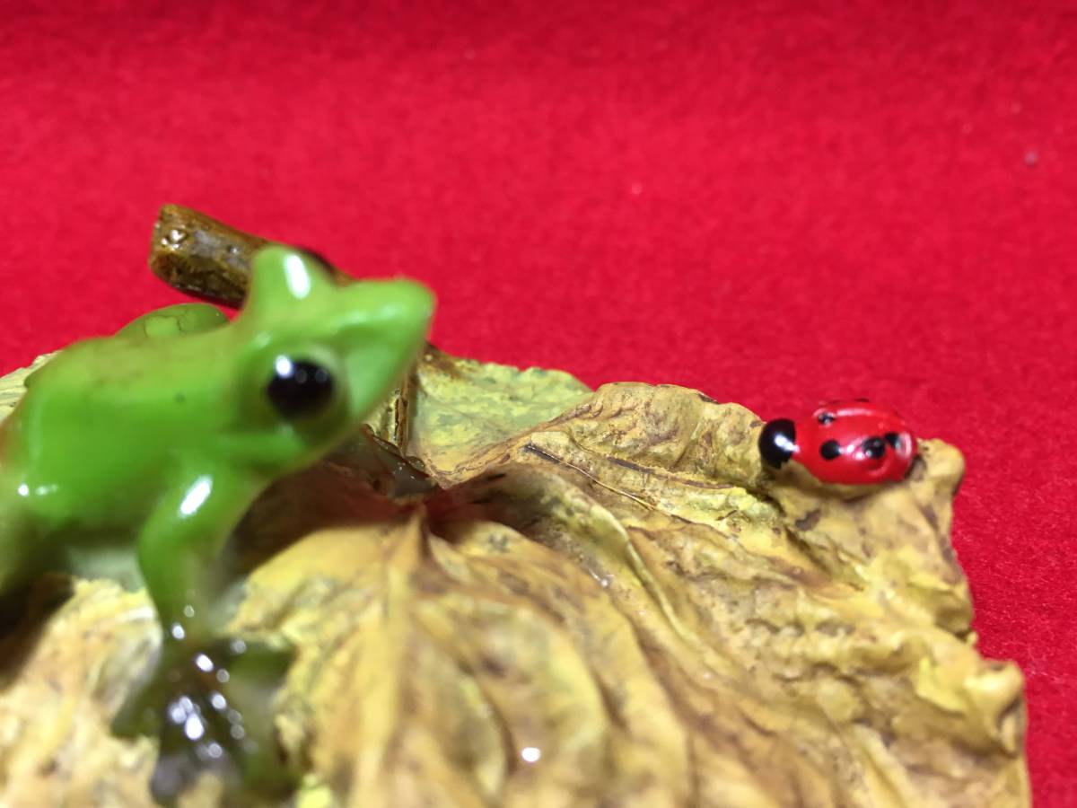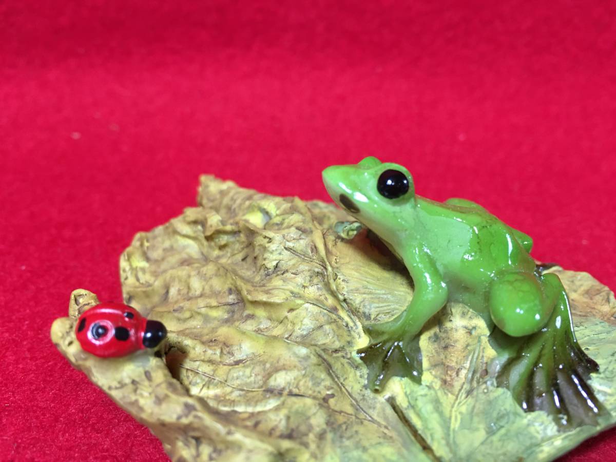 樹脂製 木の葉乗り 緑色 カエル二・テントウムシ 製品。★