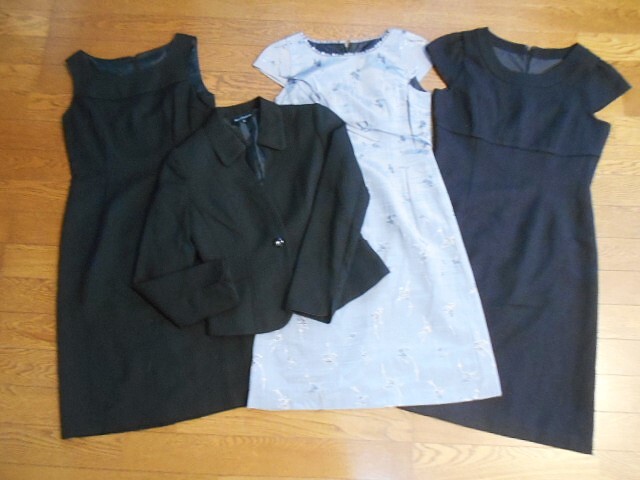 | ㈱ビーンズプレス サイズ:5(バスト77、ヒップ85、身長150) ◆ジャケット サイズ表示:5 肩幅:約34cm、脇下辺り:約41cm、袖丈:約55cm、総丈:約47cm-すべて外側から測定 *フロントボタン1ヶ所留め *お袖口スリット付き *ポケット2ヶ所 ◆ワンピース グレーサテンお花刺繍地 サイズ表記:5AP 肩幅:約30cm、脇下辺り:約41cm、ウエスト部(平置き・二つ折り):約35cm、 袖丈:約11cm、総丈:約86cm *バックジッパー ◆ワンピース ブラックフレンチスリーブ 肩幅:約34cm、脇下辺り:約45cm、ウエスト部(平置き・二つ折り):約38cm、 袖丈:約11cm、総丈:約91cm *バックジッパー *バックスリット ◆ブラック ノースリーブ 肩幅:約31cm、脇下辺り:約40cm、ウエスト部(平置き・二つ折り):約34cm、 袖丈:約cm、総丈:約86cm *バックジッパー *バックスリット ブラックツイード 表地素材:ポリエステル100%、裏地生地:ポリエステル100% グレーサテン 表地素材:ポリエステル51%、レーヨン49% 裏地素材:ポリエステル お色:ブラック/グレーサテン地 ⇒お色の再現は素人のデジカメ撮影では限界が御座いますので、強いこだわりのある方のご入札はどうぞお控え下さいませ こちらは委託品に付き購入価格・時期及び保管期間・状態は不明です。 ⇒保管臭・保管皺があります あくまでも自宅保管のユーズド品です。当方ではクリーニング等のメンテナンスは行っておりません。 お気に召さない香りや保管臭、保管皴、(室内暖色系電灯での確認に付)目の届きにくい場所の汚れ・しみ・擦過傷等の見落としがある場合があります。 何卒ご理解の上ご入札下さいませ。 返品は承っておりませんので、予めご了承下さいませ。 ご落札後のご連絡・ご入力開始は48時間以内、ご決済は5日以内にお願い致します。 それではどうぞ宜しくご検討下さいませ。 !)普通郵便:定形外発送をご選択の場合、搬送時の紛失及び破損等につきましては補償致しかねます。又、土日祝配達なし、残業軽減等の事情により、以前よりお届けまでに時間がかかっている様です。予めご了承下さいませ。 !)サイズダウンの為、圧縮梱包させて頂きます。 | |