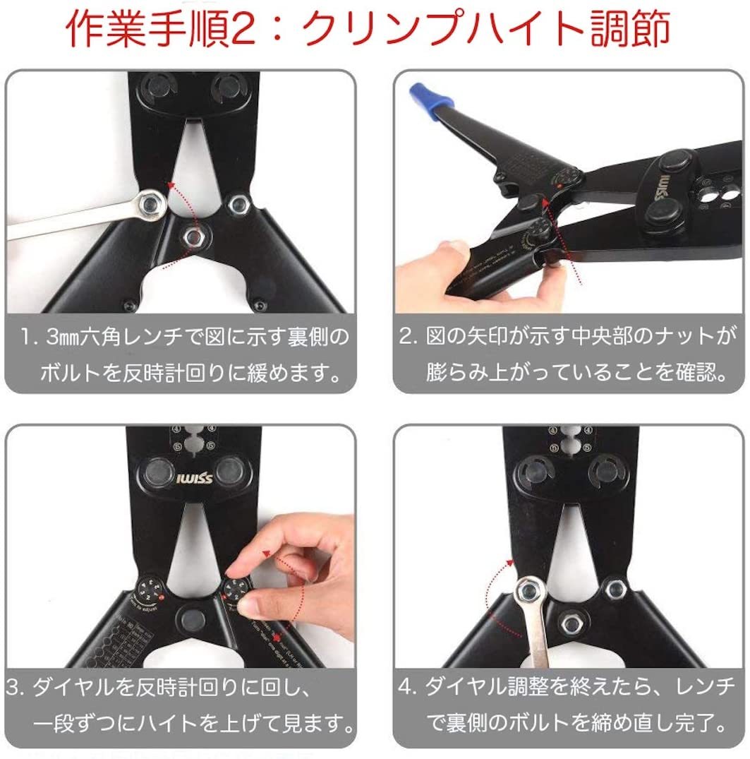 直径がφ1.58mm~φ5.0mmのワイヤーロープ用圧着工具になります。> ラチェット式ワイヤーロープ切断機CWR-60(新型)が同梱されるセット商品です。> 手動工具であるため、場所を問わずに、アルミオーバルスリーブ又は銅製スリーブを使用したロックの作成が可能になります。> トグル倍力機構を採用したタイプとなり、従来のワニ口式と比べより確実に安定した圧着を実現。> 圧着能力:φ1.58~2.00mm、φ2.50~2.80mm、φ3.17~3.50mm、φ4.00mm、φ5.00mm> 切断幅(お目安に!)> ・ワイヤーロープ、銅線、被覆線(軟鋼):Φ6.0mm迄> ・ステンレス線#12、ピアノ線(硬鋼):Φ2.5mm迄> > 商品長さ> ・かしめ機:L600mm ・ワイヤーカッター:L232mm> > 重量> ・かしめ機:2.5Kg ・切断機:0.44Kg> > 用途:ワイヤーかしめおよび切断> 適合スリープ:8文字型、丸型、楕円型のアルミスリープまたは銅製スリーブのロック加工用に。 IWISS アイウィス「IWISS」はプライヤやペンチを主力とした工具類が販売され、ドイツやアメリカをはじめ、世界50か国以上で販売されているの人気ブランドです。 発売されたオープンバレル用圧着ペンチやワイヤペンチがEUやアメリカのECサイトでベストセラーランキングで何度も1位になっている大ヒット商品です。高品質な材料から作られたそれらの製品はその精度と実績から高い信頼を得ています。 | |||