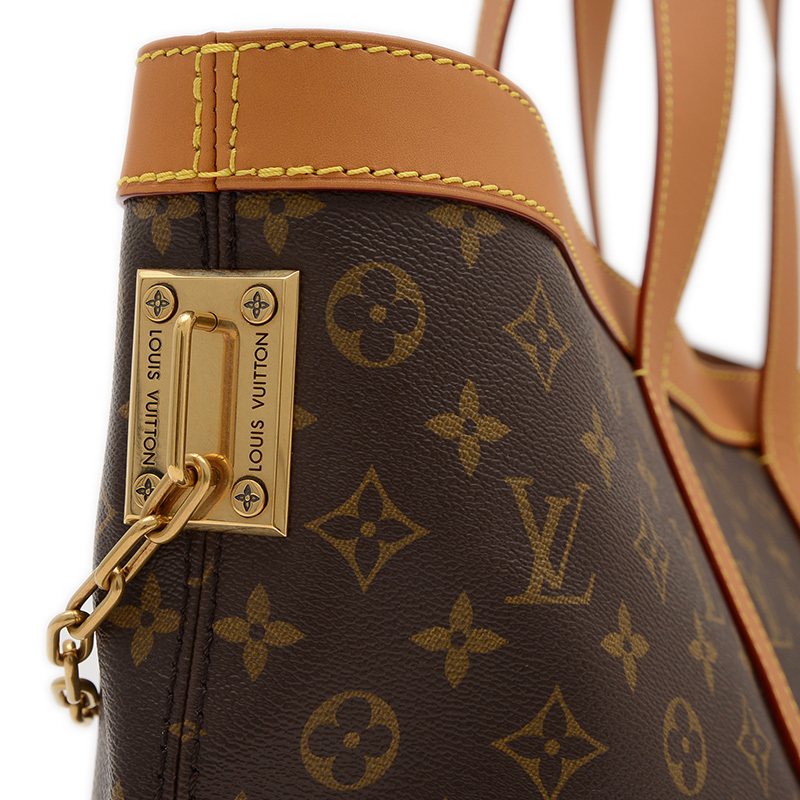 | 商品特徴 | 2020年春夏プレコレクションで発表されたメンズ向けのトートバッグです。アイコニックなモノグラム・キャンバスとヌメ革の組み合わせに、ヴァージル・アブローならではのゴールドカラーのチェーンとピンの留め具でアクセントを添えています。 |