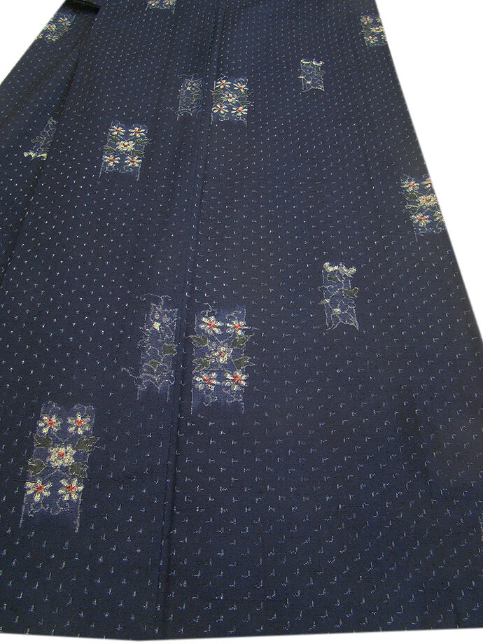 | 商品説明 | こちらのお品は「単衣」ですので5月、6月、9月にお召頂ければと思います。 着物には、大きく分けて「袷(あわせ)の着物」と「単衣(ひとえ)の着物」と「夏着物」があります。 反物(表地)を着物に仕立てるときに、裏地類をつけるものを袷の着物、 つけないものを単衣の着物と呼び、胴裏や八掛といった裏地がつかない一枚ものの着物です。 また裏地がないため、座る時などにヒップのラインが目立たないよう、 居敷当て(いしきあて)の生地をつけることもあります。 居敷当ては付いておりません。 しなやかでさらりとして手触り良く着心地良い涼やかな風合いの十日町紬地、 渋い濃紺色地にエンジ、深緑、灰白色等の花草柄の織柄が 洒落感高い着物姿を演出しております。 また、バチ衿仕立てとなっております。 |