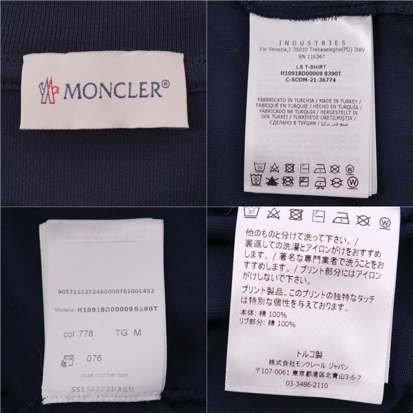 | 美品 モンクレール MONCLER 2021年 Tシャツ カットソー ロングスリーブ 長袖 ロゴ プリント トップス メンズ M ネイビー |