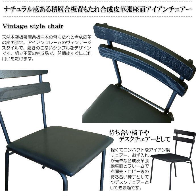 | 【商品名】 | ヴィンテージ調アイアンフレームのナチュラル感ある積層合板背もたれ合成皮革張座面 ダイニングチェアー2脚セット |