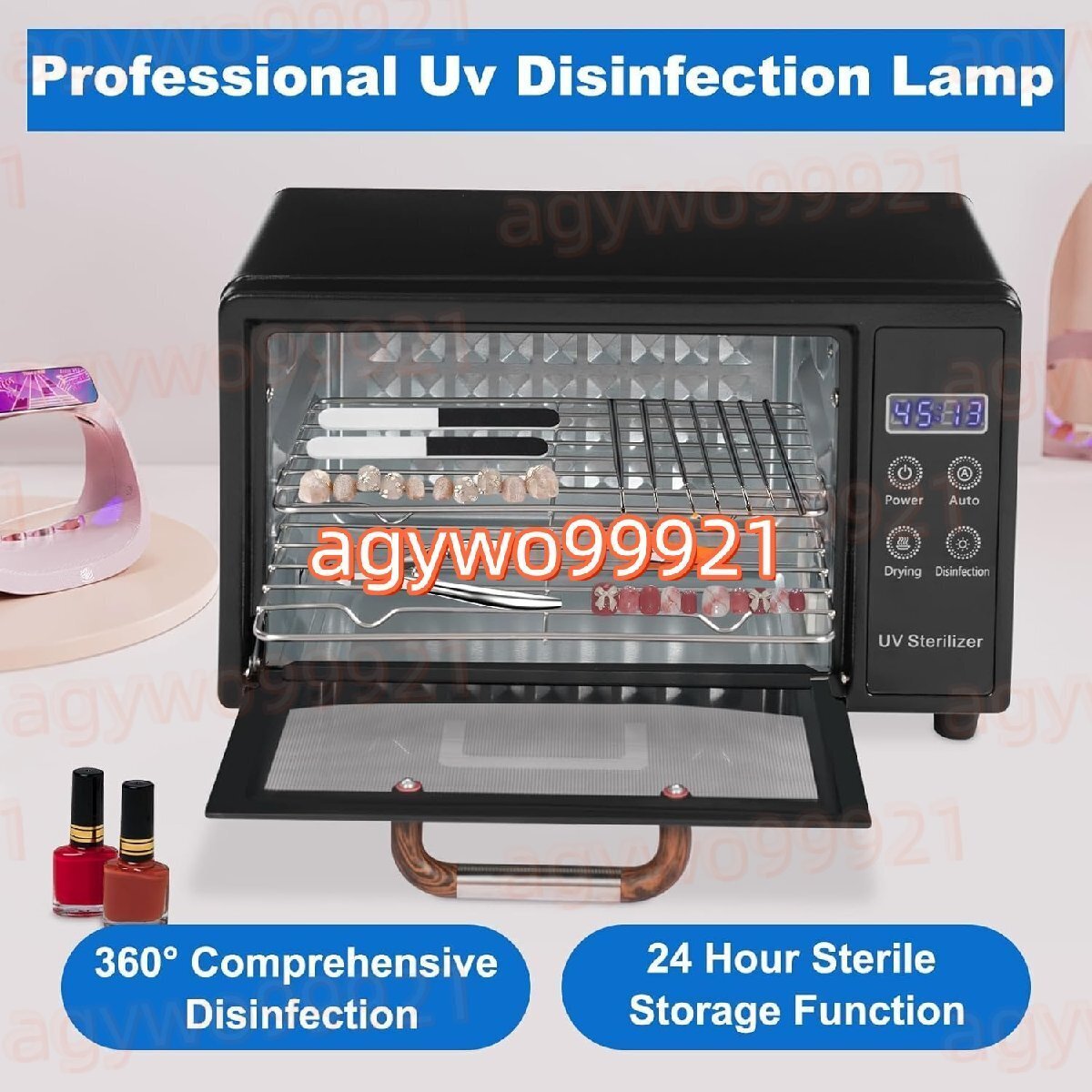 効率的な操作:この乾燥キャビネットは、内蔵UVランプと約70℃の温風を備えています。強力な乾燥技術と効果的な衛生管理を組み合わせることで、ネイルアートツールを毎回乾燥した状態に保ち、衛生的な状態を保ちます。 耐久性と安全性を兼ね備えた設計:この乾燥キャビネット 安全で便利:この乾燥キャビネットは、強化ガラス扉、側面の通気口、便利なハンドル、滑り止めマットを備え、安全性と使いやすさを最大限に高めています。スタイリッシュなデザインとLEDディスプレイが、プロフェッショナルでモダンな雰囲気を醸し出します。