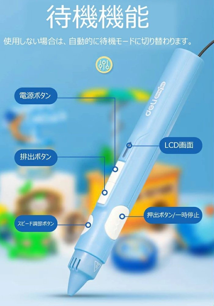 【創造力を育む】平面的な制限を脱して、360度立体の空間作画を実現します。3D立体印刷ペンを使うことで三次元思考を行うことで子供の想像力を育成します。