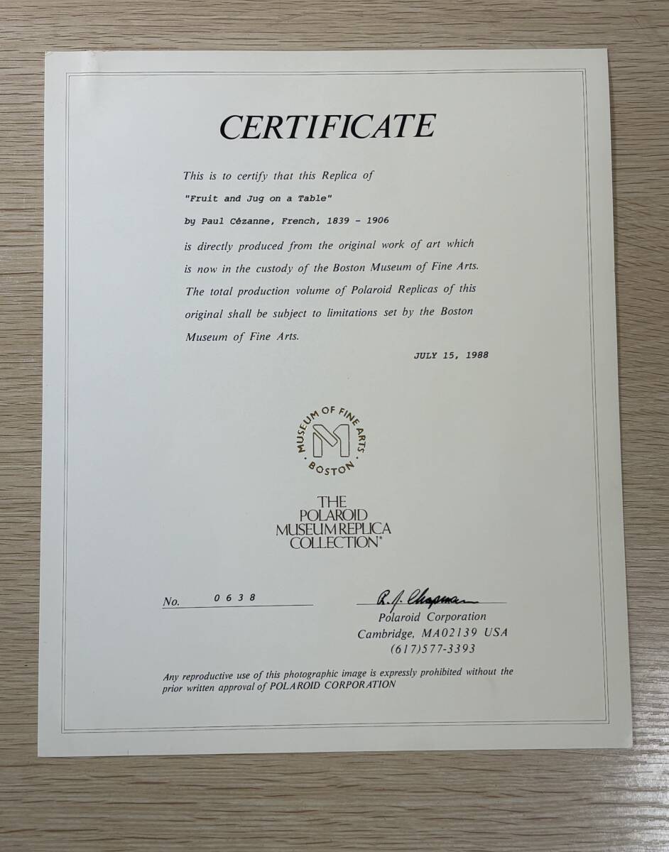 | 限定シリアル・ポール・セザンヌ 「テーブルの上の果実と水差し」 複製画 額装 証明書付 ポラロイド美術館★7269管理 | |||