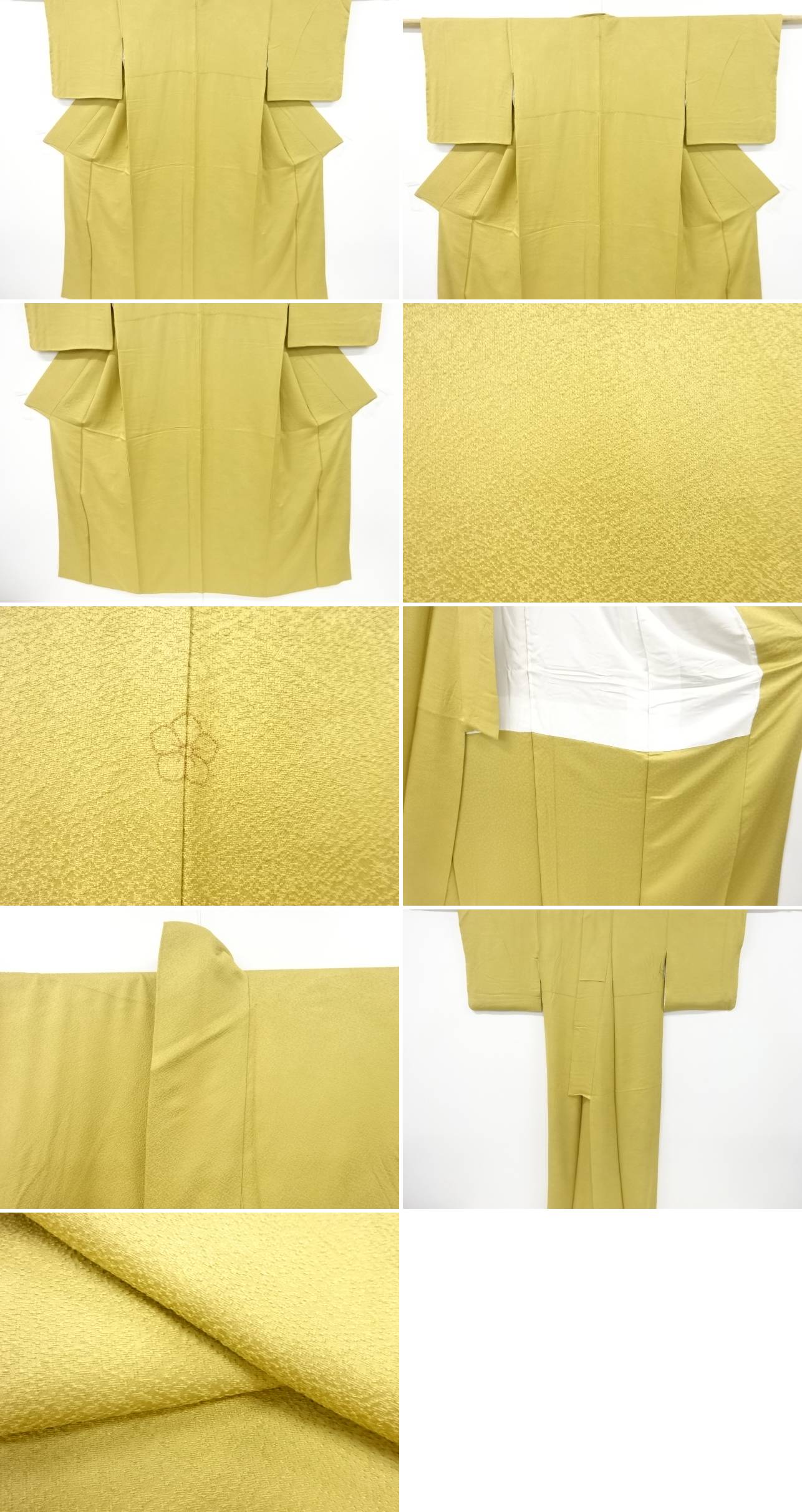 | お着物の状態をできる限りお伝えできるよう努力しておりますが、当店で出品の商品は全てアンティークになります。 一品一品丁寧に検品の上、出品させて頂いておりますが、稀に小さな見落としや、アンティーク特有の経年に伴う汚れや傷のある場合もございますので、アンティーク・中古品にご理解ある方のみのご入札をお願い致します。 寸法に関しましては、一品一品手作業での採寸であり、性質上生地の伸縮性もございますので、若干の誤差はご了承ください。 ごく稀にですが、樟脳やアンティーク特有の匂いがある場合がございます。 匂いに関しては、商品コメントには記載しておりませんので、ご理解の上ご入札下さい。 はぎれ商品につきましては、解き商品が多くなっております。 生地端に縫い糸の残りが多く残った状態での出品となります。 ご理解の上でのご入札と、ご自宅でのお手入れをお願い申し上げます。 | |