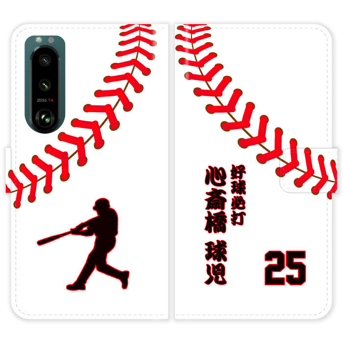 Xperia 5 III SO-53B SOG05 A103SO 対応、野球ボールのデザインに和風の名入れができる手帳型ケース