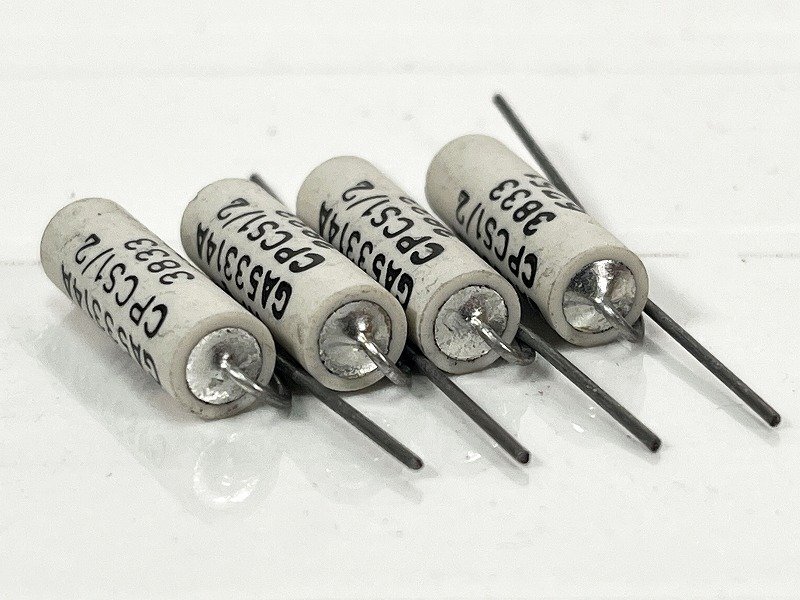 Western Electric GA-53314A 383kΩ 4個です。 ガラススケルトンに金属抵抗を蒸着させた高度な技術。 WE社を代表する技術です。 誤差1%、容量1/2W。 キズや汚れがございます。 ・サイズ:7.2φ×D26.6(mm) |