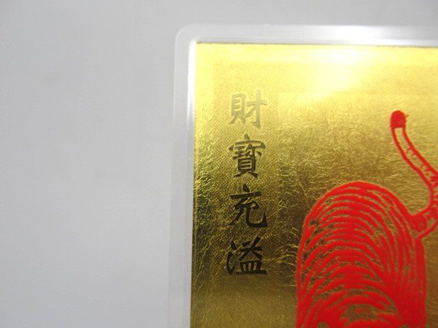 | ◆未使用品◆長期保管品◆ 開運符 純金9999 富貴発財 招財進寶 財寶充溢 福徳豊穣 ラミネート入り 【長期保管品】 管理番号:35730/S2 約2.47g(ラミネート込) 未使用保管品です。 多少の反り・角の剥がれ箇所・保管汚れ等がありますのでご了承ください。 ご利用方法のお分かりになる方のみご入札をお願い致します。 商品は画像の物が全てです。 商品の状態等は画像にてご確認ください。 ※新品の様な完璧な状態では御座いません。 ※ご理解頂ける方のご入札をお願い致します。 ご入札前に必ず全文をお読みになり、 お客様が十分にご納得された上でのご入札、 ノークレーム・ノーリターンでお願い致します。 入札の取消は行っておりませんのでご注意下さい。 (ご入札された時点で同意頂いたものとします) ※画像のものがすべてになります。 ※保管品の為、多少のスレキズ等ある場合が御座います。 ※専門知識が無いため質問にお答えできない場合が御座います。 ※素人検品・撮影の為写真に写り切らない汚れ・キズがある場合が御座います。 ※新品の様な100%完璧な状態では御座いません。 ※念入りに検品しておりますが見落としがある場合が御座います。 ※神経質な方、完璧をお求めの方は入札をお控え下さい。 ※御理解頂ける方のご入札をお願い致します。 ※まとめてお取引には対応致しません。 全て単品でのお取引となります。 ※同梱は行っておりません。 ※商品管理上、取り置きは致しませんのでご了承下さい。 | |||