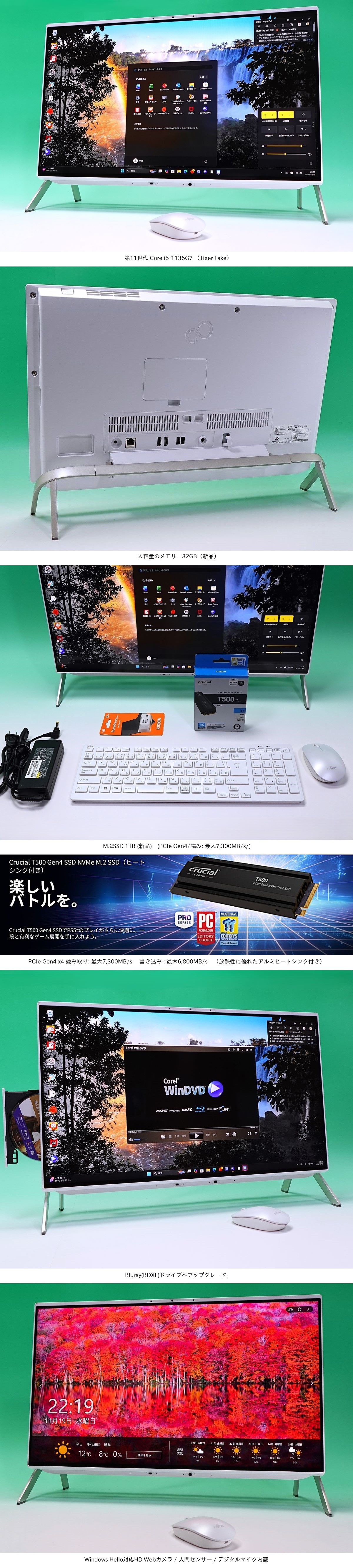 ・ 大容量・超速 M.2 SSD 1TB (PCIe Gen4/新品) 搭載。