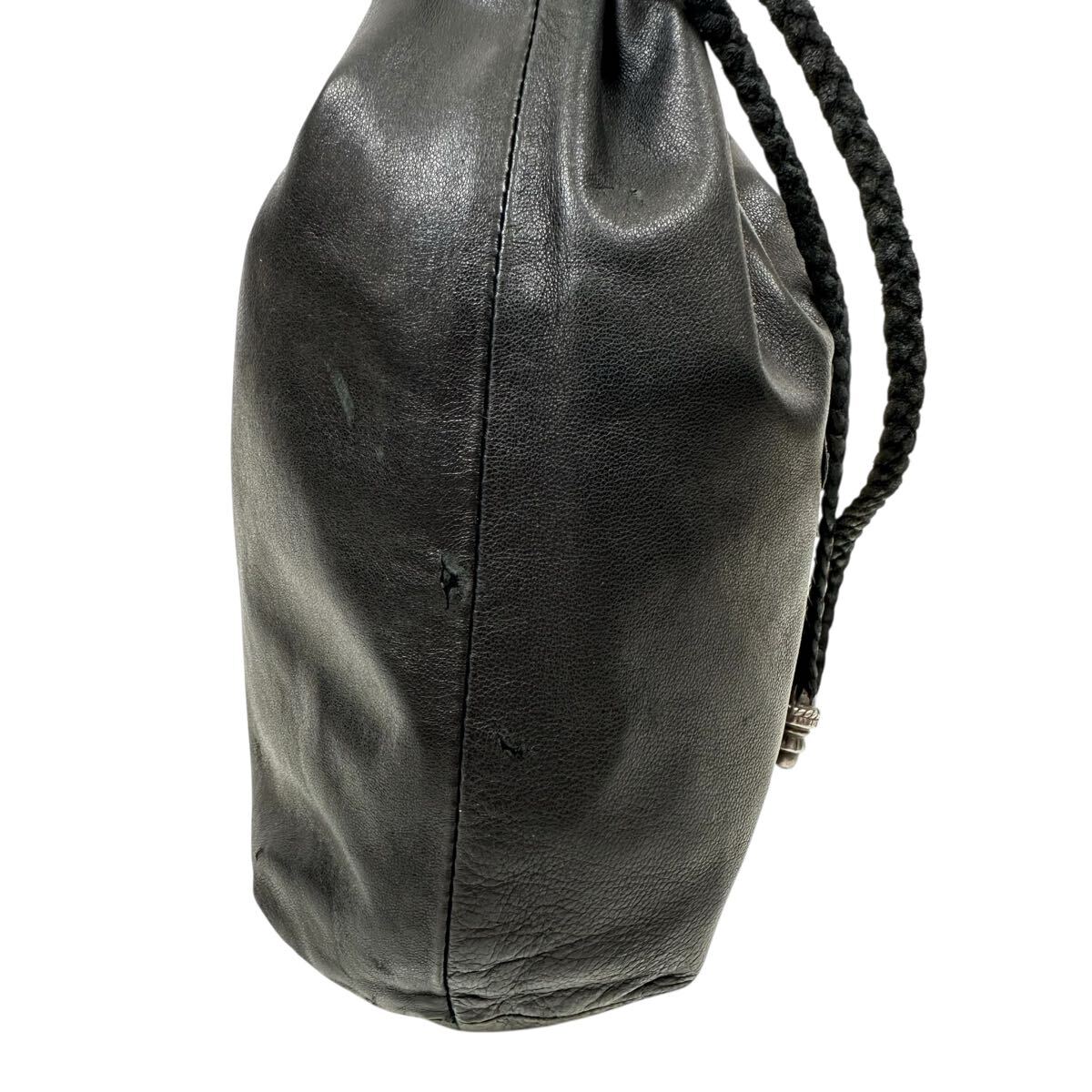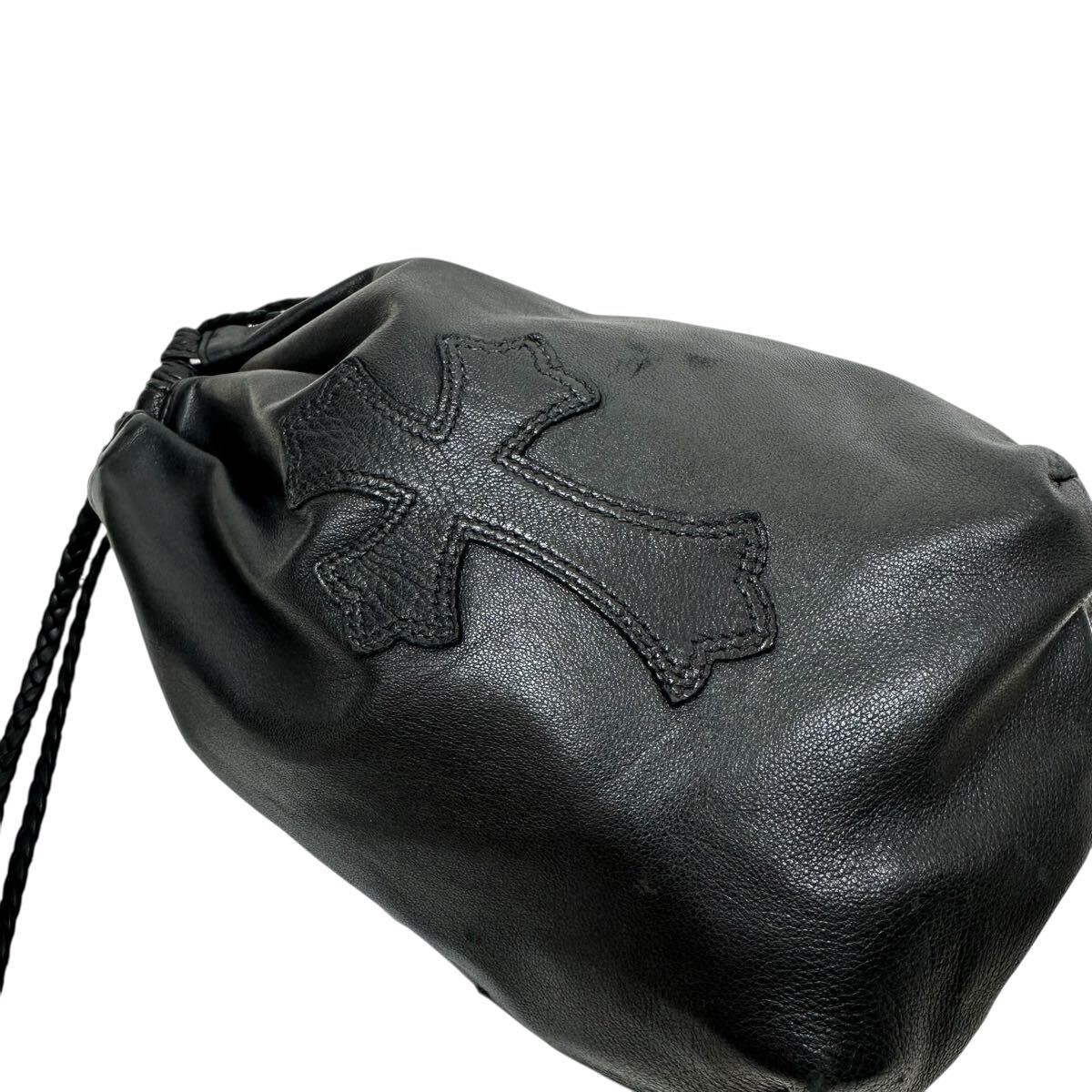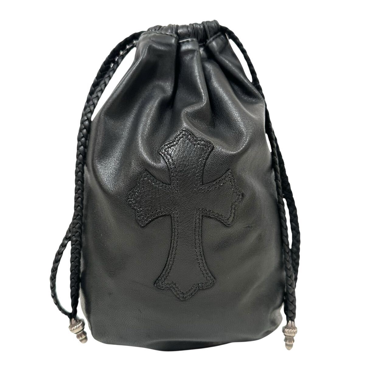 DRW STRNG SACK CRS PATCH クロスパッチ ドローストリングサックレザー 巾着ハンドバッグ 巾着バッグ