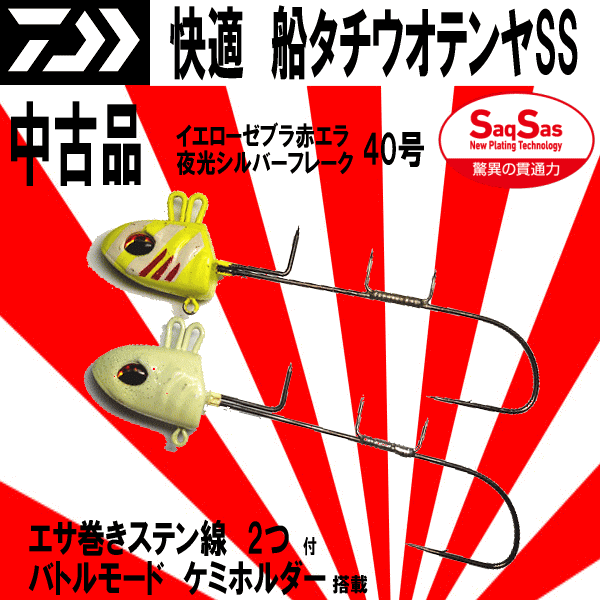 | 商品名 :快適船タチウオテンヤSS イエローゼブラ赤エラ 40号と夜光シルバーフレーク 40号 のセット(中古品 商品代引不可) ノーマル&バトルモードで攻めろ!SaqSasフックと重心変更機能搭載の船タチウオテンヤ 2020年に限定カラーとして発売されたカラー。その後リメイクされて、ファン待望のレギュラーカラーとして登場 ・「快適船タチウオテンヤSS」は、現在考えられる全ての要素を盛り込んだ新兵器。 ・ハリはサクサスを使用して抜群の掛かりを実現しています。 ・ハリ先を長めに研いであるので、軽いアワセでも掛かる! ・画期的な機能も搭載。アイを2箇所にすることで攻め方の変更が可能。後ろ側がノーマルモードで、前側がバトルモード。ノーマルモードがスロー巻きした時に水中で水平姿勢になるのに対し、バトルモードはテンヤの姿勢が若干立ち気味になり、ハリ先がタチウオに近づくため、活性がよい時はさらに掛かりやすくなります。 ・あくまでも個人で使用した感想ですが、テンヤチョイスに悩んだ時に間違いなく実績を出してくれる位信頼してます。 ・最初は夜光シルバーフレークで、その後アタリが減った時にイエローゼブラが一役買ってくれる、そんなテンヤのセットだと思います。 ■製品情報 状況を選ばすオールラウンドに使え、即掛けはもちろん、昨今のじっくりテンヤを追わせて食わせ、掛けへ持ち込む釣法にも最適です。 【驚異の貫通力でチャンスを逃さない“SaqSas(サクサス)】 ・テンヤのタチウオはエサ釣りとルアー釣りの両方の側面を持っていますが、食わせるよりも引っ掛ける要素の強い釣りです。つまりハリの掛かりの良さが釣果を左右します。 ・ 従来のメッキ処理では実現できなかった驚きの貫通力を持つ表面処理テクノロジー。 ・ハリの表面にフッ素系特殊プレーティング加工を施すことで、刺さり性能は従来の塗装ハリに比べて最大40%(平均約20%)アップ(当社比)。 ・今まで合わせきれなかった小さなアタリやショートバイトも逃さずキャッチ。今までのハリと一味も二味も違う「サクッと刺さる」感覚は、一度体感すると忘れがたいものとなるはず。なお、非常によく刺さるハリとなっているため、取り扱い時にはこれまで以上に注意して下さい。 ■付属品 ・エサ巻きステン線 2つ |