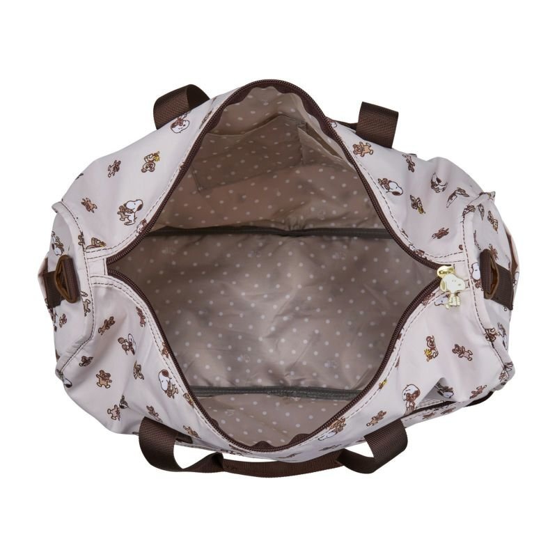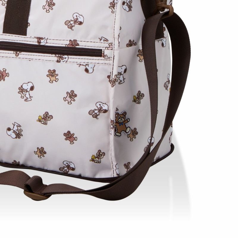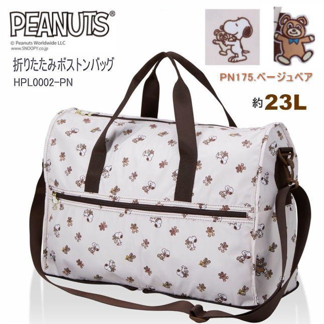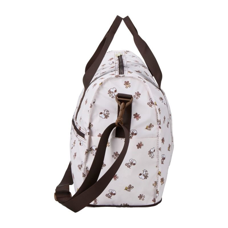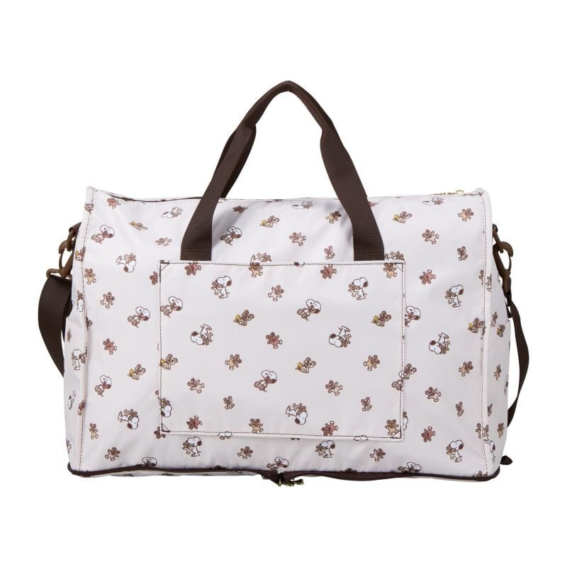 スヌーピーのデザインが可愛いボストンバッグ。 使わない時はコンパクトに折りたたみ可能。スーツケースに載せてもズレ落ちない『キャリーオン機能付』なので、旅行時のお土産入れやサブバッグにとっても便利。もちろん、旅行だけでなく普段使いにもオススメです♪