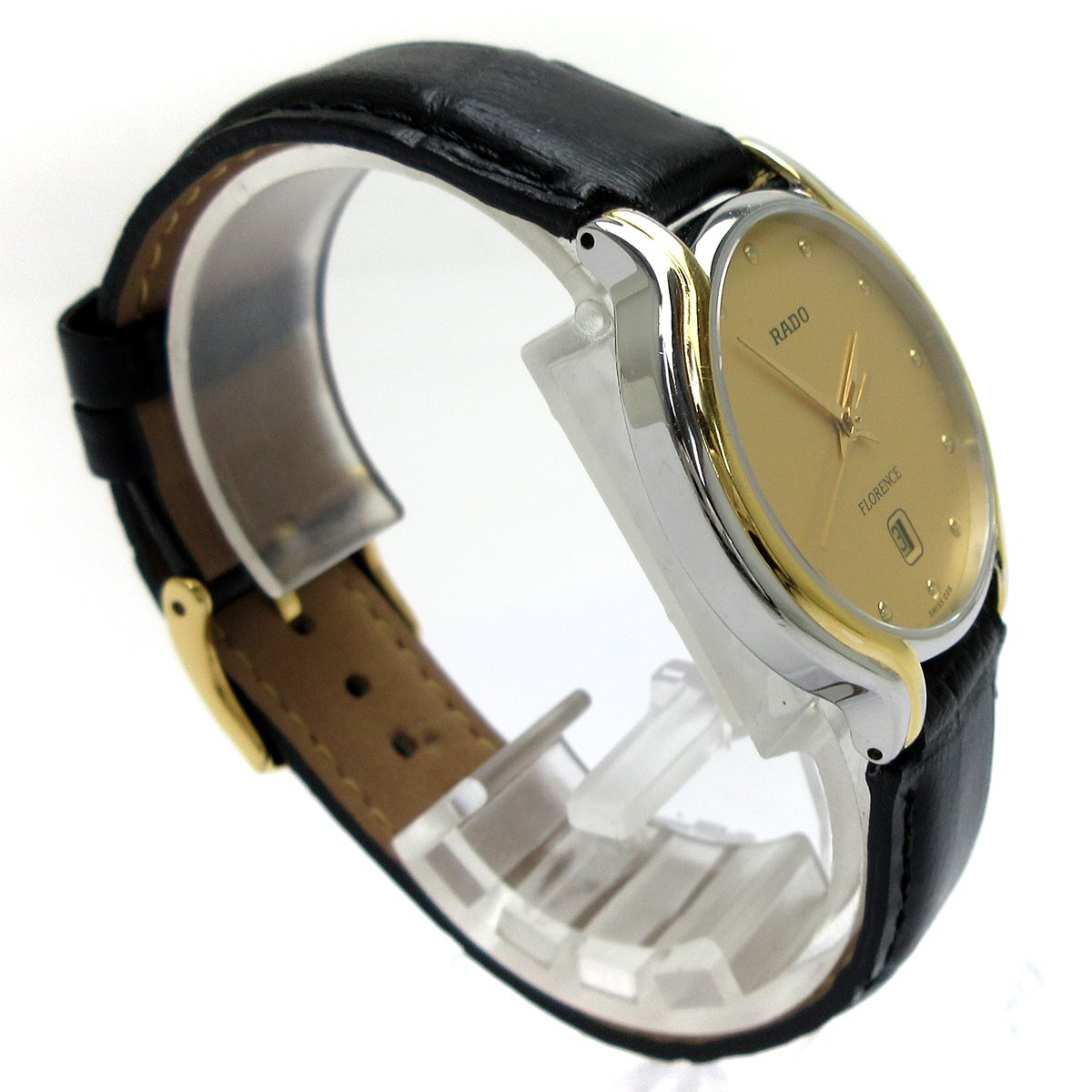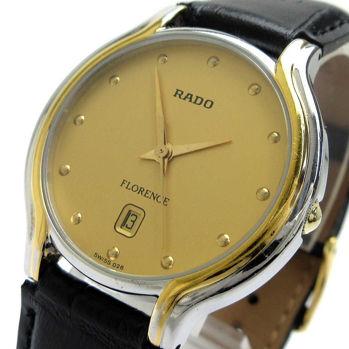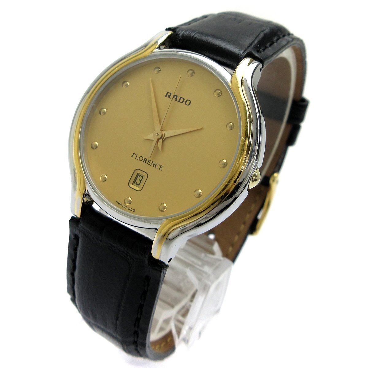■スイスウォッチ「ラドー」のドレスライン「フローレンス」。 ■ゴールドコンビの品のあるデザインが目を惹く時計。 ■3針、デイト搭載オーソドックスな機能をもったモデルです。 ■日常使いからお仕事まで幅広く使えるアイテム。 ◎カレンダー。 ◎日常生活防水。 ---【商品状態】--- ☆外装、クリーニング済、小キズはありますがキレイです。 ☆バンド(社外品)使用感の少ないキレイな状態です。尾錠も社外品。 ※商品画像はお客様のモニター環境によっては色調が異なって見える場合がございますのでご了承ください。 |