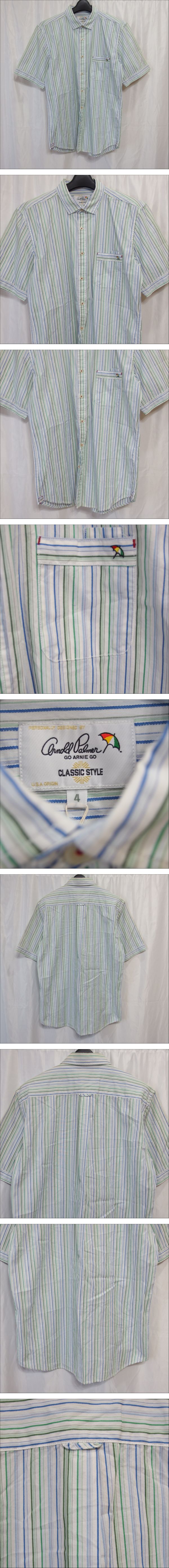 Arnold Palmer◆アーノルド パーマー コットン製 半袖 ストライプ柄 シャツ(グリーン×ブルー)サイズ4・タグ付◆未使用保管品 N | |||