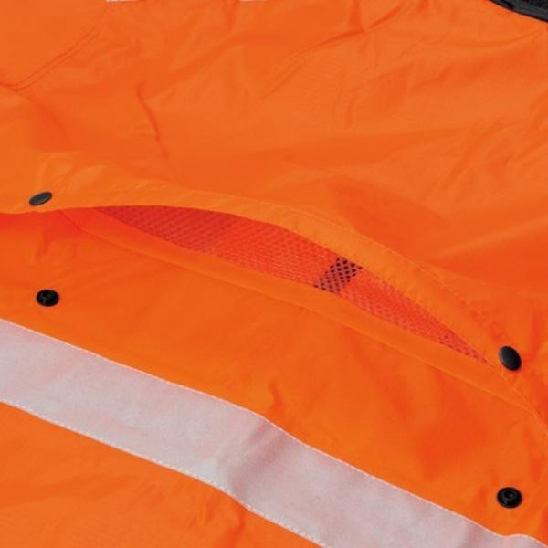 | 仕様 | (JSAA高視認安全服認定品) 補足情報:耐水圧15000mm、透湿度10000g 使用用途例:消防団、インフラ、路上作業、作業服・ワークウェア 機能・特徴:防水・撥水、耐水圧が高い、高視認、透湿 調節フード、巻き込みフード、メッシュ、ベルクロ袖、二重袖、スタンドカラー、ベンチレーション、背中反射材、収納袋、ひよく仕立て |