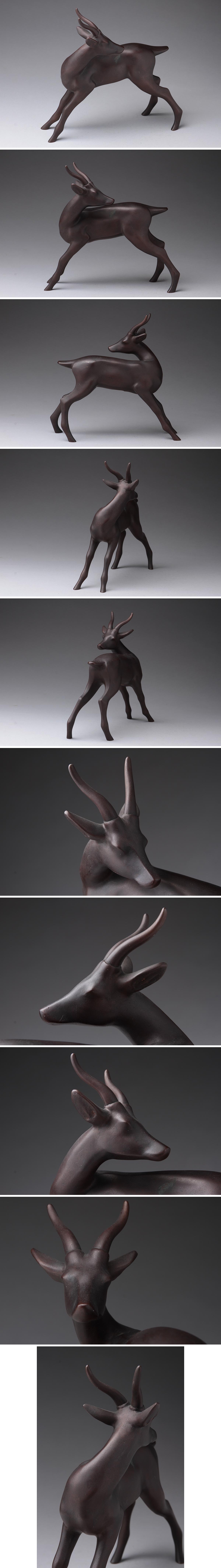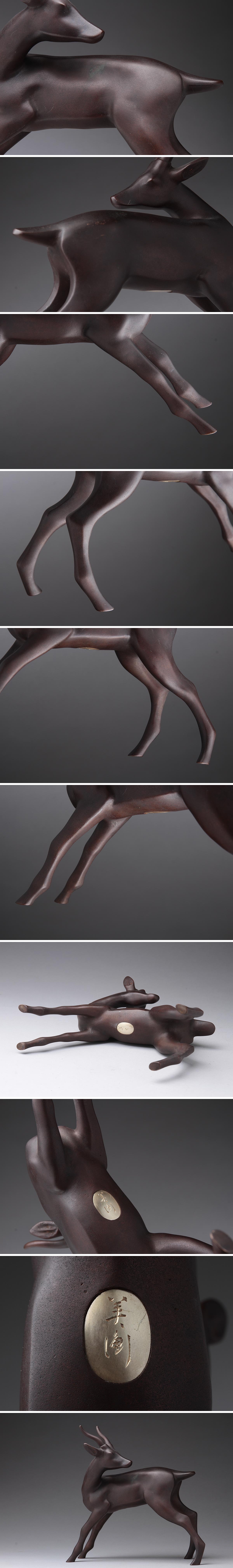 | ◆ 日展評議員【彫金家 二橋美衡 作】鋳銅「鹿」置物 高18.3cm / 重1kg「しか・シカ」床置 床飾り 古美術品 ◆