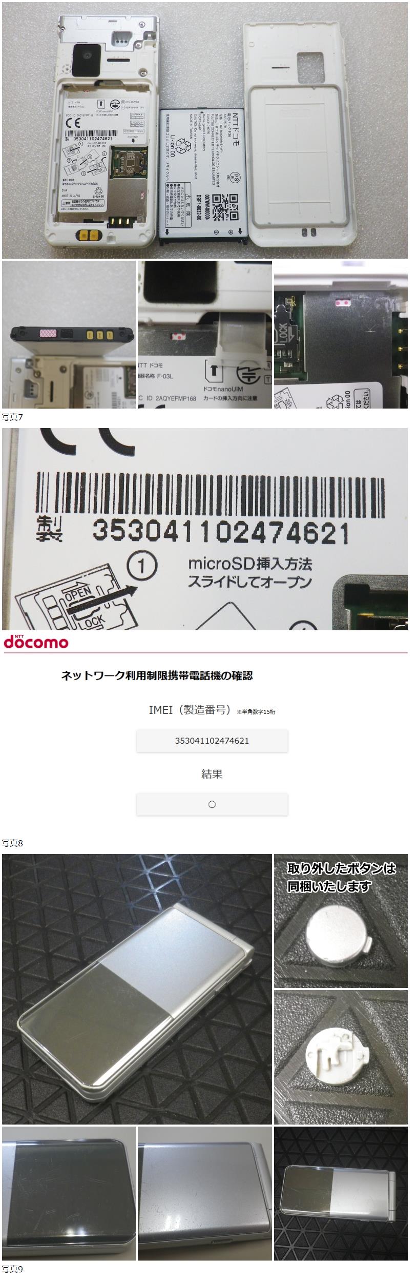 | A1-25◆docomo F-03L arrows 4Gガラホ 富士通 利用制限○ ワンプッシュ故障 手動開閉可 ジャンク |