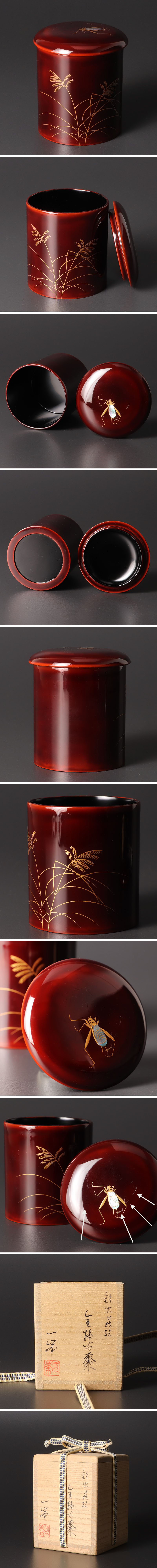 秋の夜長を象徴する鈴虫と、風にそよぐ秋草の図が優美に描き出されています。蓋に配された鈴虫の蒔絵は、今にもその清らかな音色が聞こえてきそうなほど精緻な作品です。 ★商品は一峯の作品である事を保証致します。 |