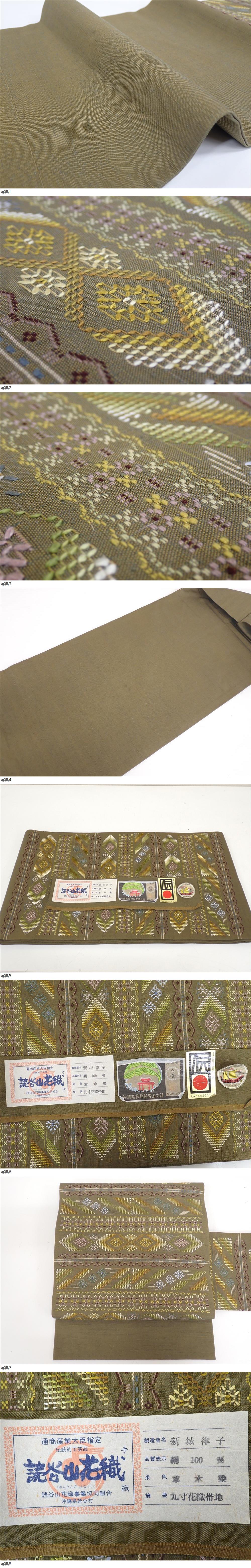 極上の逸品 読谷山花織 草木染 正絹 九寸名古屋帯 証紙 琉球の風土 30.5cm×381cm カーキ | ||||