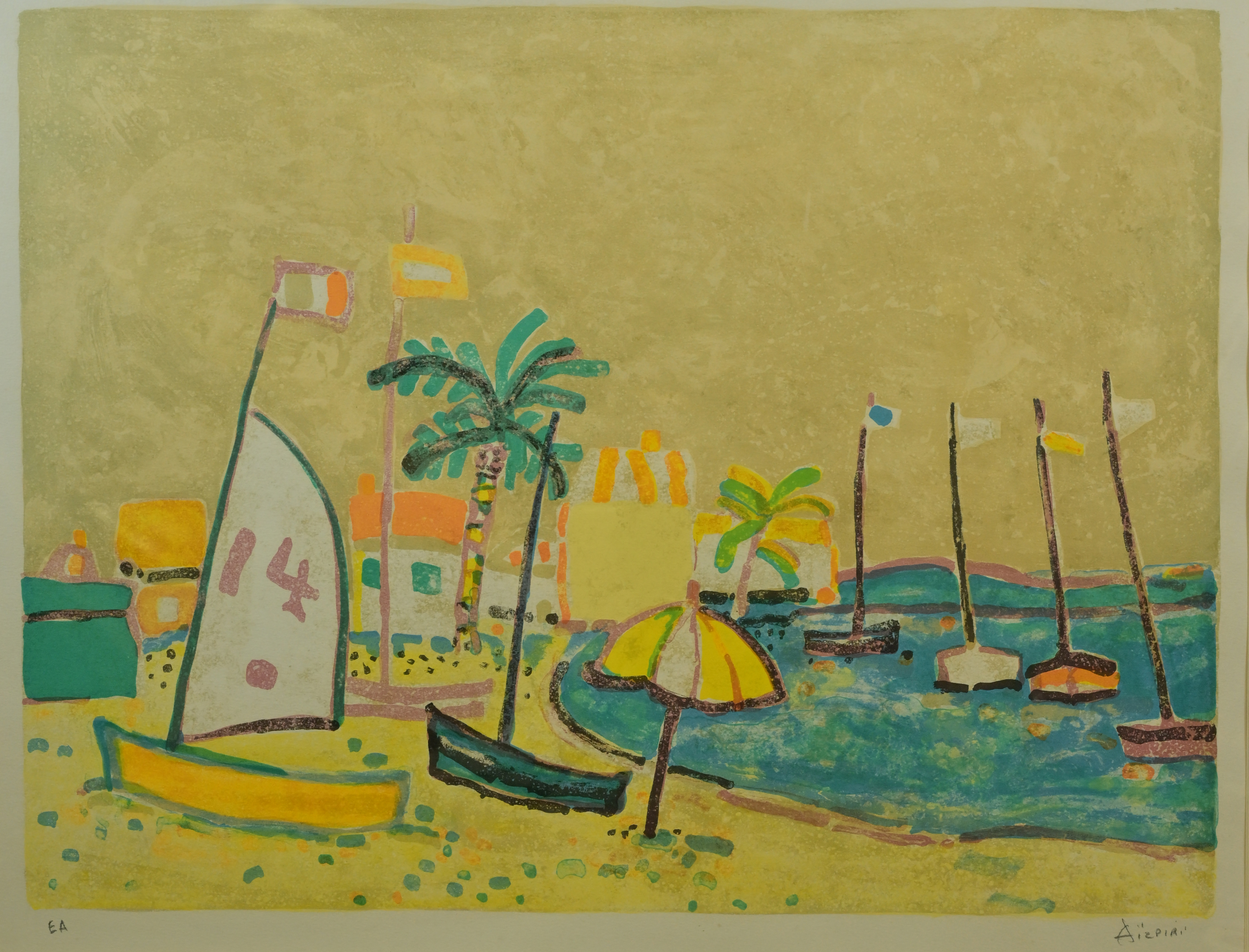 | 略歴 | ポール・アイズピリ 1919~2016 ポール・アイズピリは、フランスの画家になります。1919年彫刻家でバスク人の血をひく父のもとに誕生し、父は息子をブール象嵌学校に入学させたが、アイズピリは画家になるのが夢でその夢を捨てきれず、1936年にエコール・ボザール(パリ国立美術学校)に再入学します。1939年の第二次世界大戦に徴兵とされ、ドイツ軍の捕虜になりますが脱走し、1943年パリで初個展を開催して以降具象画家として実績を積み重ねます。1946年新人画家の登竜門として名高い「青年絵画展」で3等賞、1951年ヴェニス・ビエンナーレでプリ・ナショナル大賞を受賞するなど、フランス画壇に確固たる名声を高めました。その後1960年代は、ニューヨーク、東京、ジュネーブ、アヴィニヨンなど各国で個展を開催し、1963年の第2回国際形象展に初出品。以後毎回同展に出品し続け、1971年トゥールでジュマイ賞を受賞しました。アイズピリの作品は、パリ画壇の中でもとてもわかりやすい具象絵画で親しまれ、人気なポピュラーな作家でした。自然と家族を愛する画風がコレクターでも愛され、リトグラフ等でも親しまれております。2016年老衰の為96歳で死去。 |