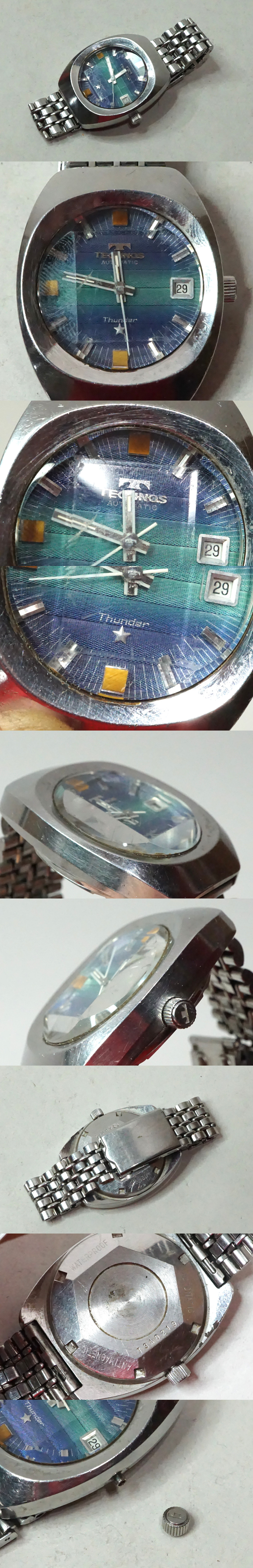 ☆商品詳細欄に追加画像ありTECHNOS テクノス Thunder サンダー 腕時計になります。稼働しておりますが精度等は分かりかねます。経年なりの状態、龍頭が取れております。当方詳しくありませんので詳細な確認等はしておりません。状態等は画像確認でわかる範囲、現状で判断お願いします。支払は簡単決済のみ、発送はゆうパック元払いのみになります。ゆうパック60サイズでの発送になります。評価の悪い方等に関しては入札を事前に削除することがあります。よろしくお願いします。