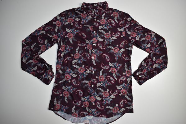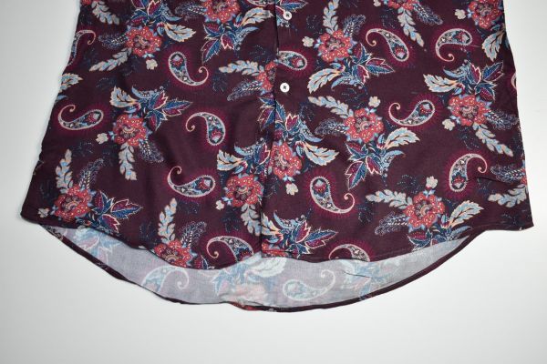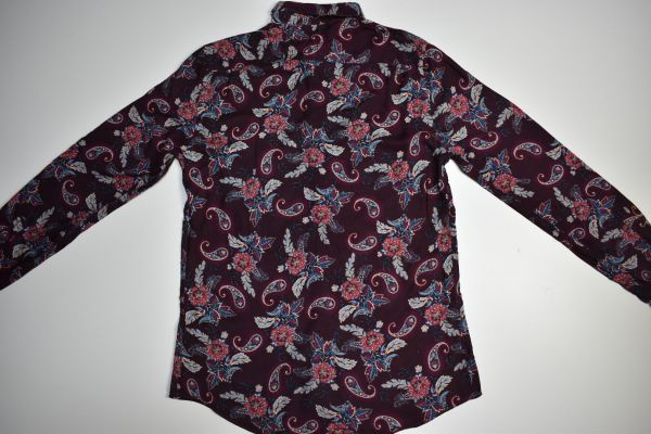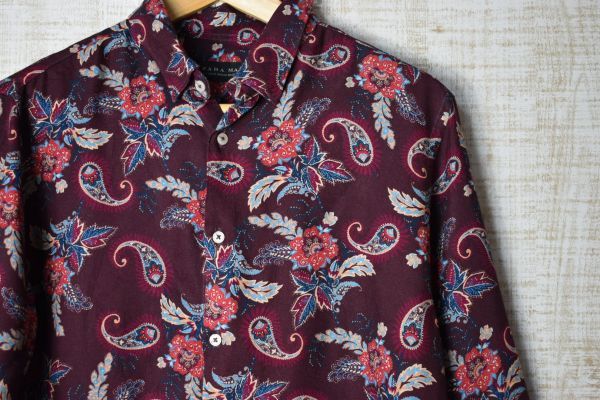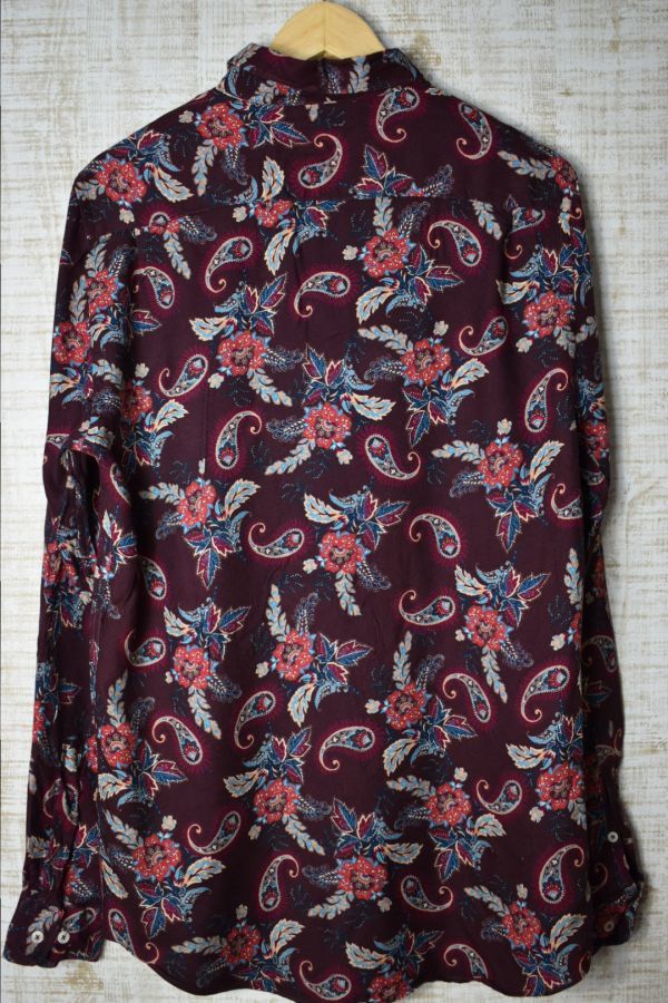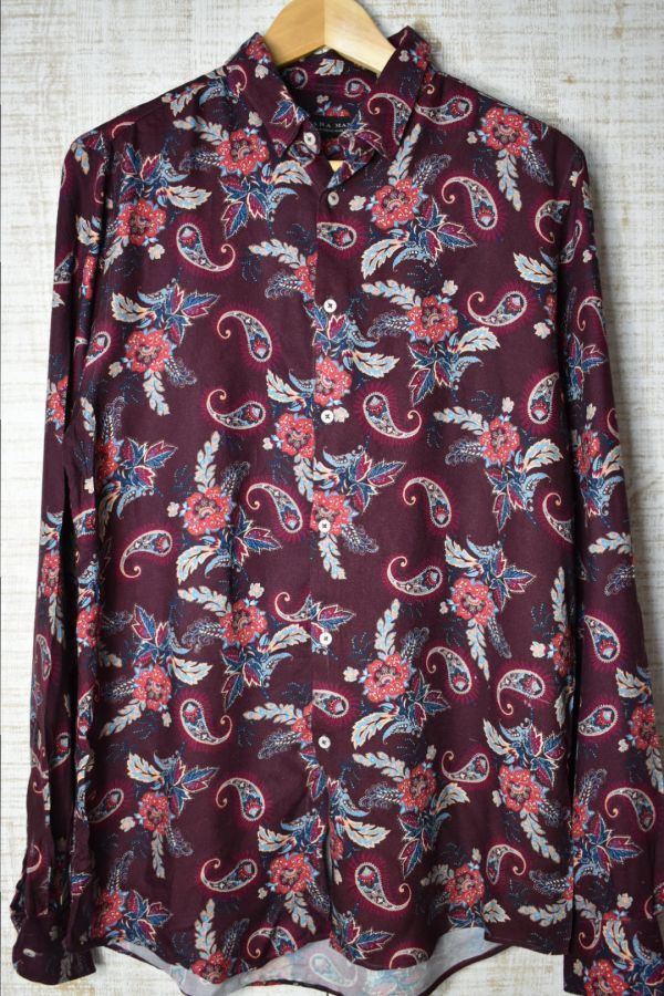 ●US USED ZARA MAN ザラ ペーズリー柄 レーヨン シャツ エンジ【M】