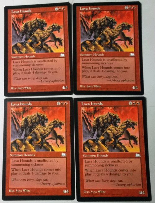 MTG/英語/4枚セット/Lava hounds(溶岩の猟犬)/ウェザーライト/アンコモンです。中古品扱いですので、神経質な方、美品をお求めの方は入札をご遠慮ください。