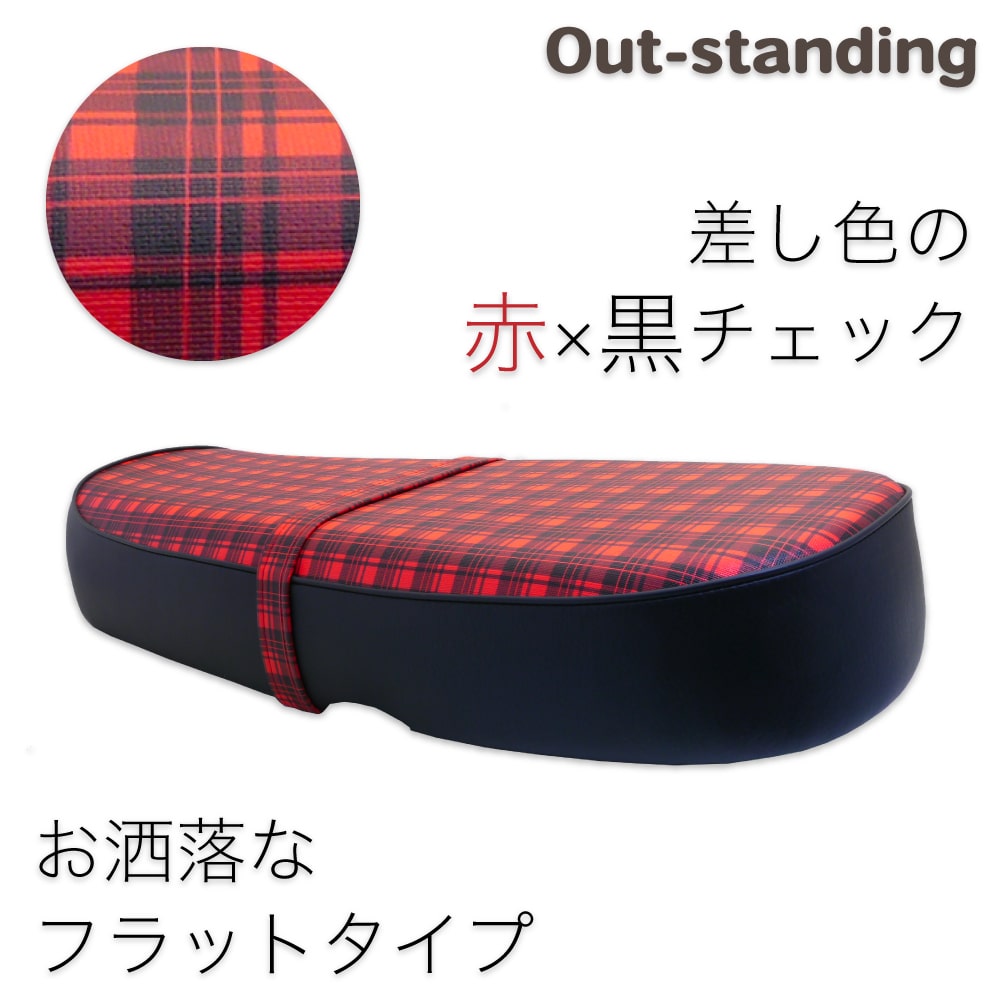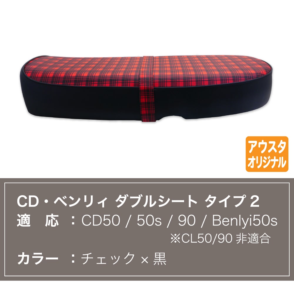 | ホンダ CD・ベンリィ用のダブルシートです。 カラーは赤チェックと黒。 バンド付きのフラットタイプです。 アウトスタンディングのオリジナル商品です。 |