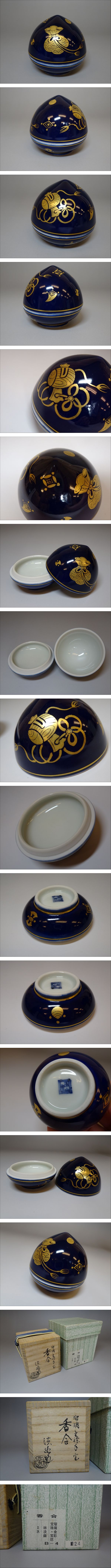 【涼風庵】五山窯 林淡幽 瑠璃金襴手宝珠形宝尽 香合 共箱 美品 | |||