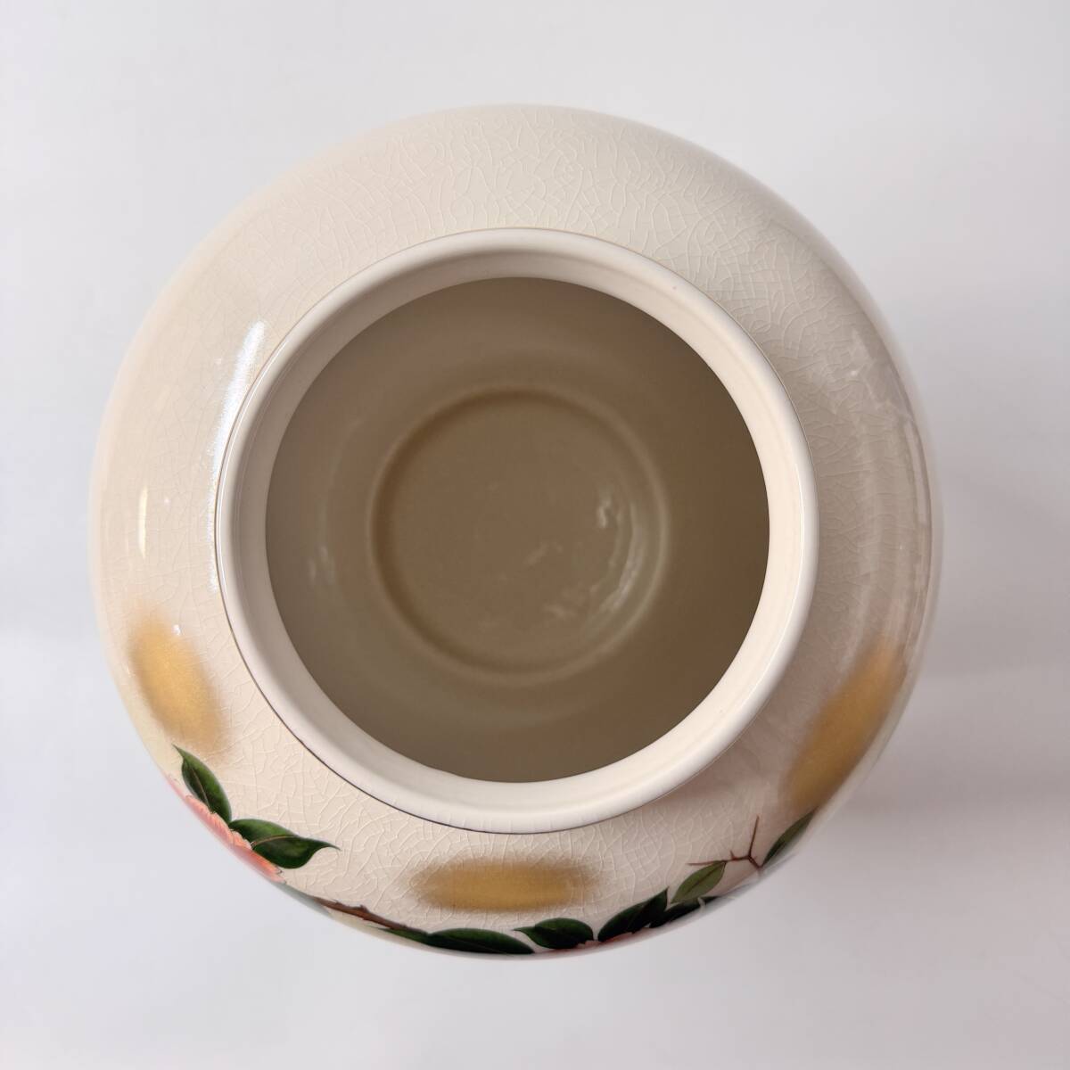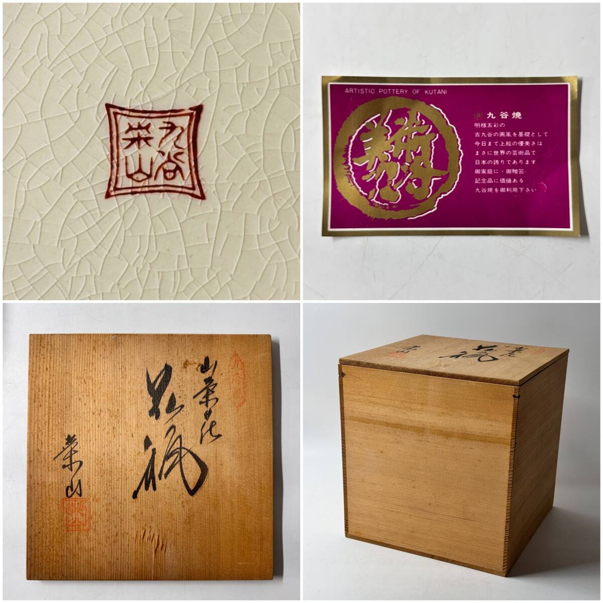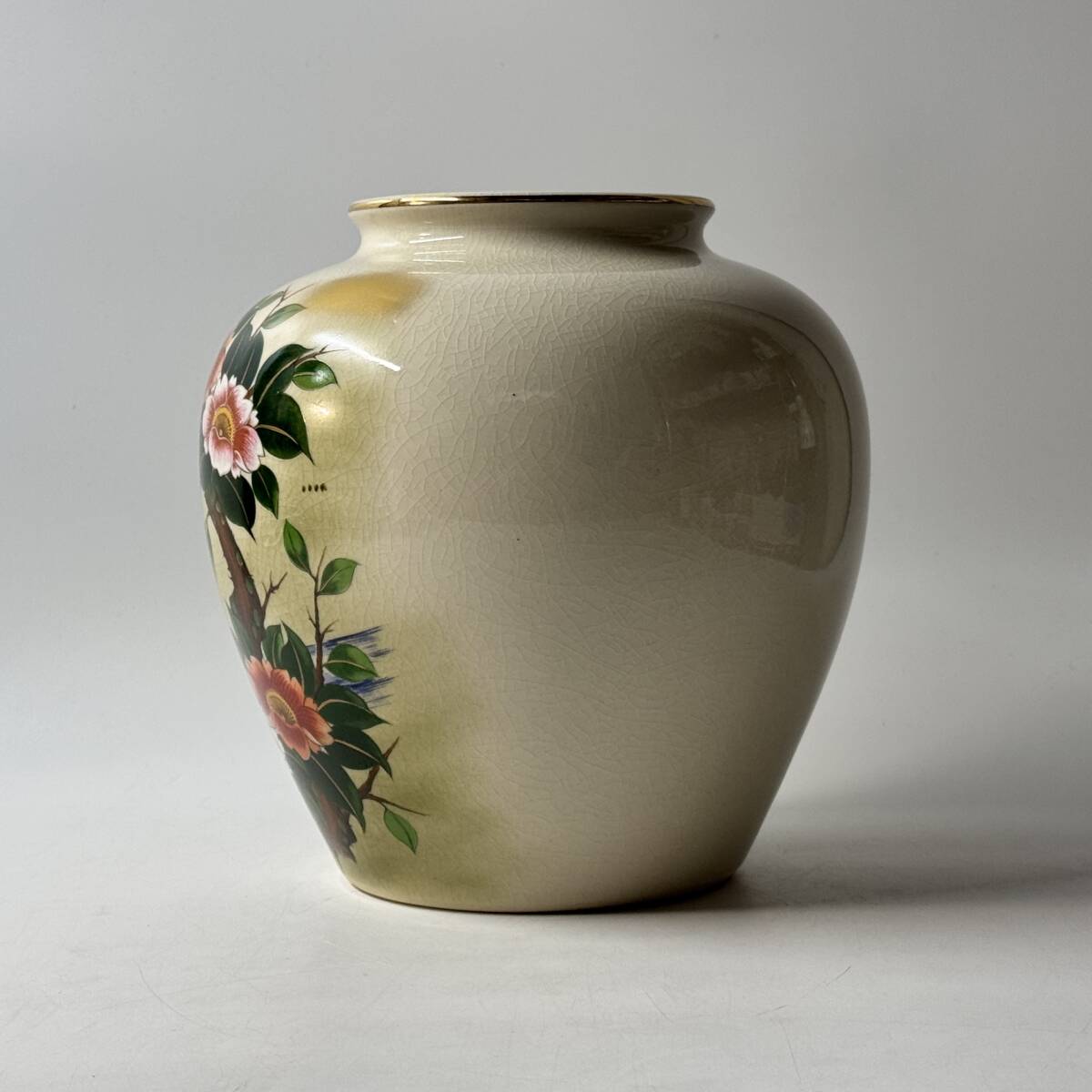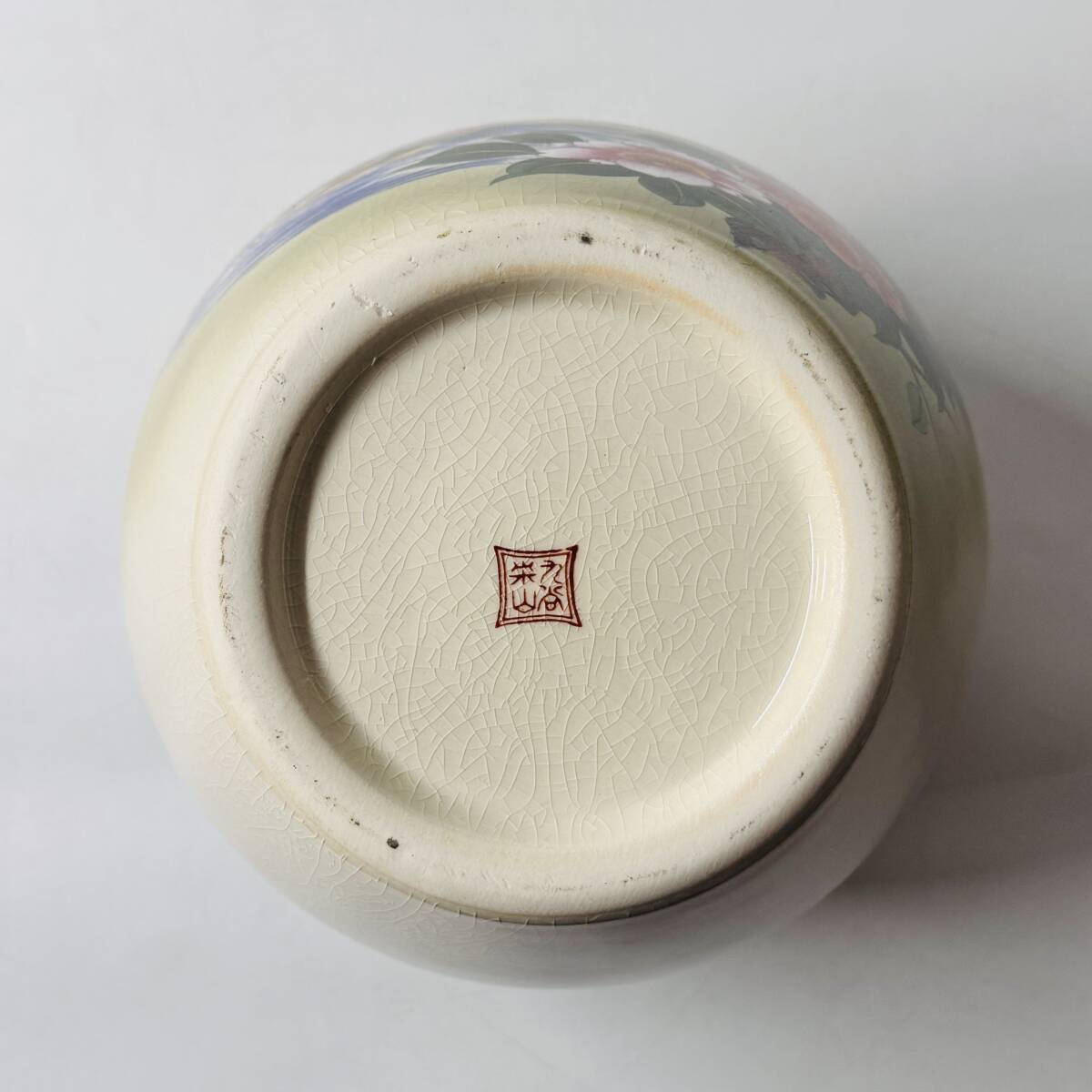九谷焼 栄山 金彩色絵 貫入 鴛鴦 牡丹 花鳥図 花瓶 花器 花入 花生 華道具 茶道具 共箱 栞 経年保管品 現状品の出品です。