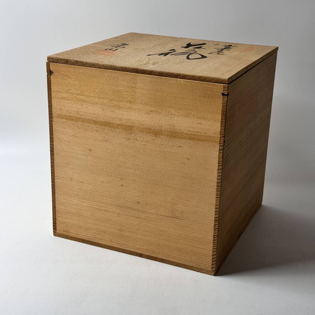 共箱に経年保管でのくたびれ(埃汚れ、色褪せ、色焼け、シミ汚れ、テープ跡、テープによる素地剥離など)が出ています。