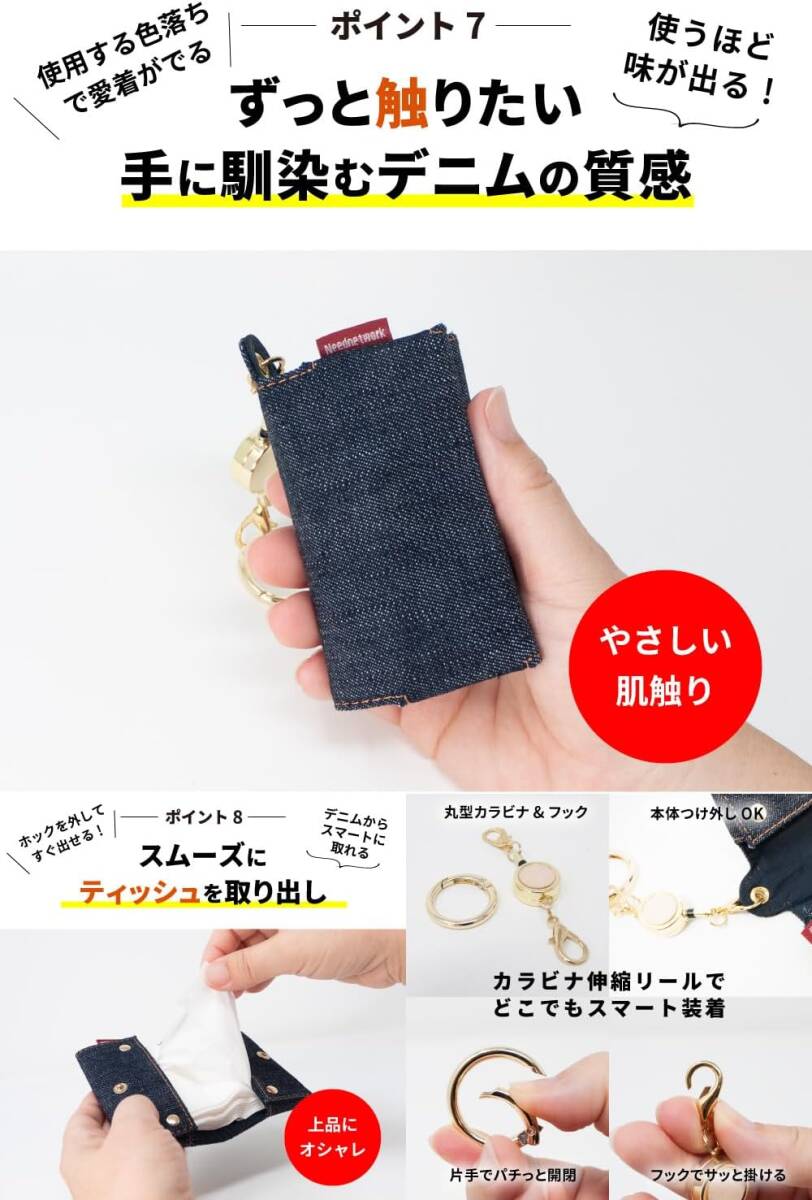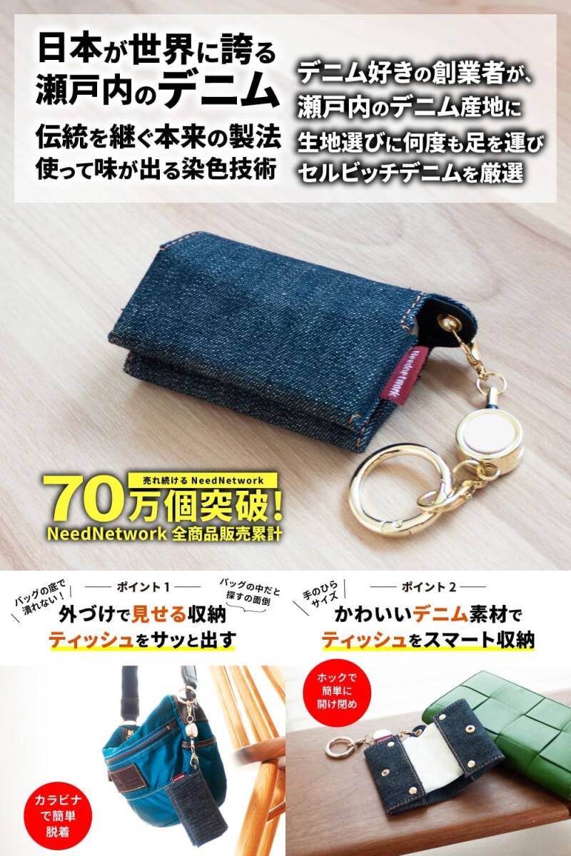 [ニードネットワーク] 日本が誇るデニム ポケットティッシュケース ティッシュケース ポケットティッシュカバー ティッシュポーチ ミニ 二つ折り 子供 携帯用 ポーチ