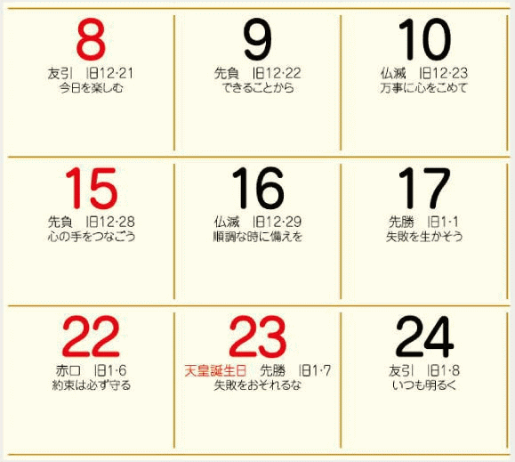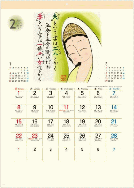 | 商品説明 | 心和む温かい絵と言葉 にわぜんきゅう作品です。 絵と味わい深い書、にわぜんきゅうの世界が満載。 12ヵ月タイプなので毎月季節のイラストと言葉でお楽しみ頂けます。 クリーム色の用紙で優しい雰囲気の心温まる素敵な作品です。 前後月、六曜が付いてメモ欄も充実した使いやすいカレンダーです。 環境にやさしい紙素材のホットメルト仕様です。(金具不使用) ●にわぜんきゅう作品集カレンダー『ぜんきゅう心のギャラリー』 【商品詳細】 ・サイズ:53×38cm ・用紙:クリームケント紙 ・仕様:12ヵ月タイプ 13枚 |