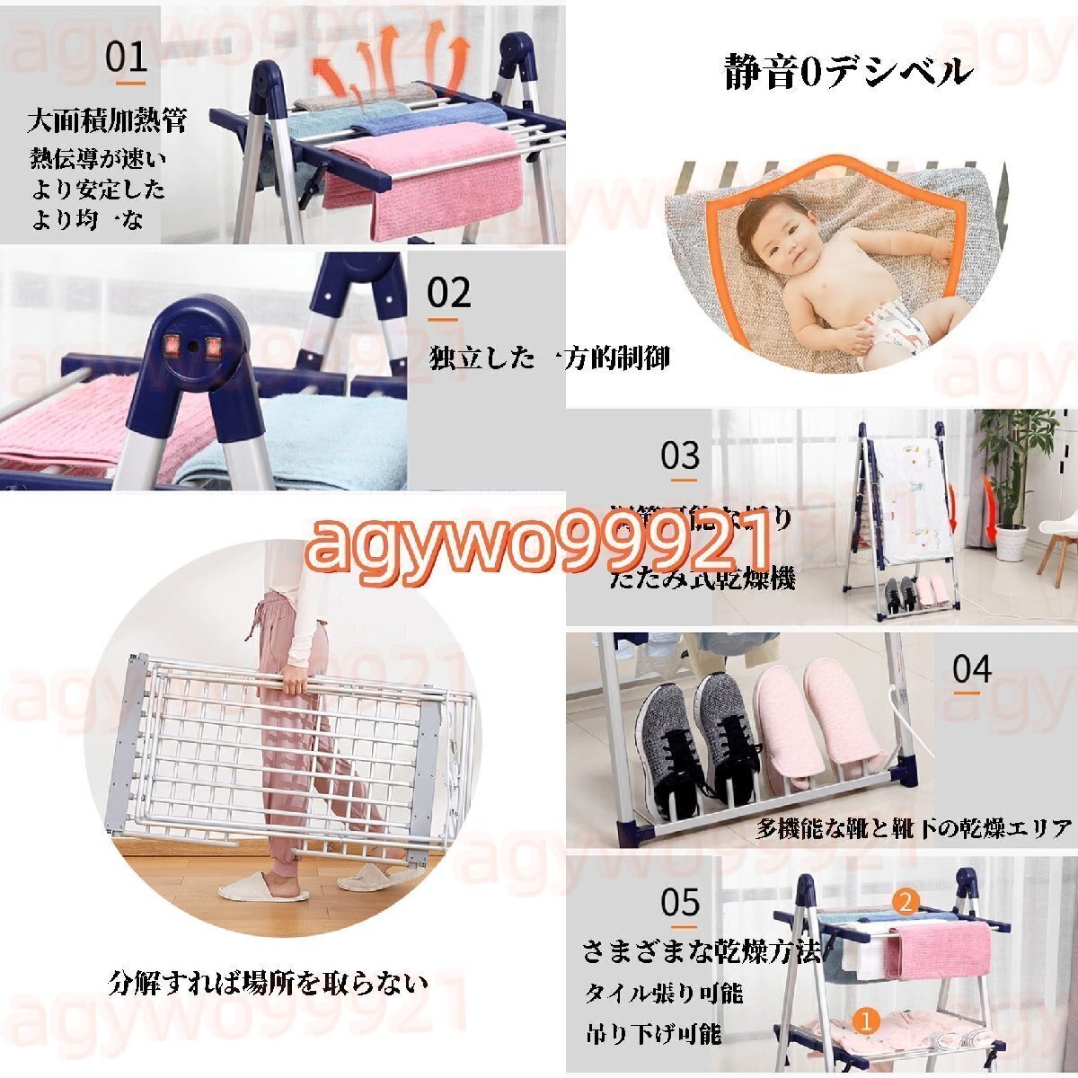 高速加熱と高速乾燥、均一かつ高速加熱、一定温度と迅速な乾燥、強力な耐荷重能力、乾燥の大きな可能性。 持ち運びが可能で、さまざまなシナリオに適しています。 折りたたみ収納、収納オーダー6CM隙間。 省エネ、低消費電力、省エネ、家事の良いヘルパーです。商品名:電動折りたたみ物干しラック製品の材質:スペースアルミニウム、合金ヒーティングコア、難燃性PP商品のサイズ:オープンサイズ 100X66X60CM 収納サイズ 100*66*72CM製品電力: 210W加熱ロッドの数: 20プラグタイプ: 3 穴アース。電源コードの長さ:1.4m
