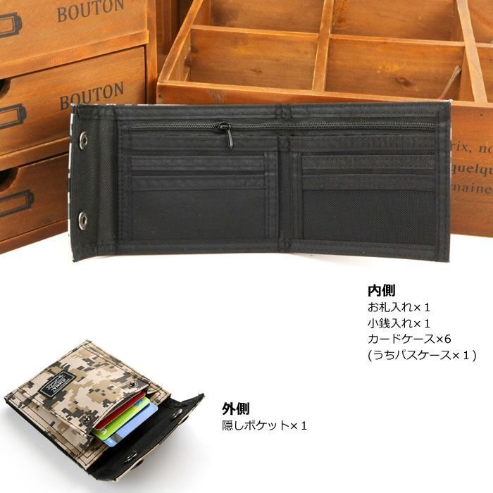 薄くてカジュアルなメンズ二つ折り財布・迷彩 | |