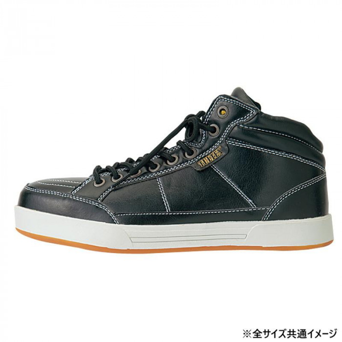 | 履き口広めで足入れしやすい、人気のミドルカットです。つま先部分には鋼製の先芯が装備されています。 |