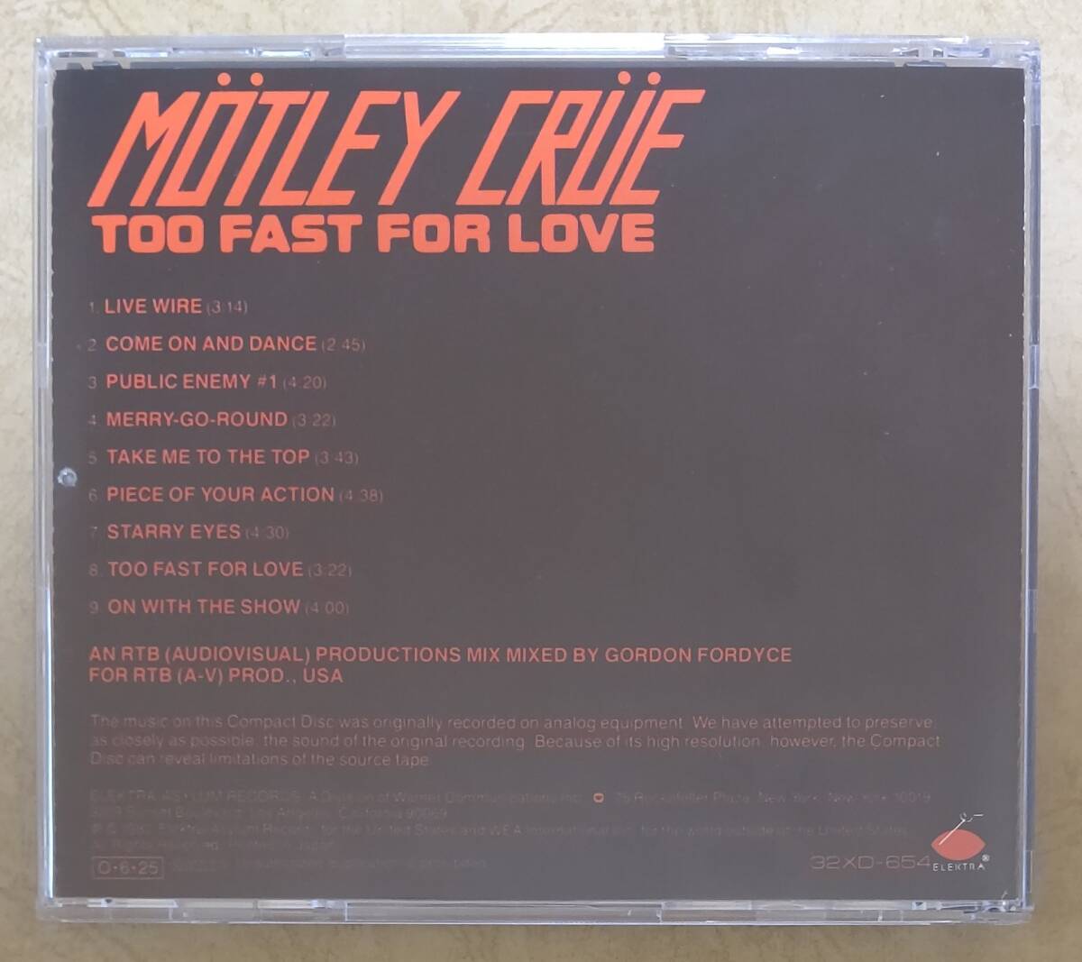 【HM/HR】 ※旧規格盤 モトリー・クルー (MOTLEY CRUE) / 華麗なる激情 (TOO FAST FOR LOVE) 32XD-654 ※LAメタル(L.A.METAL)