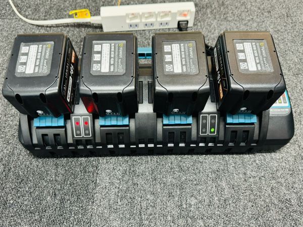 4個同時充電・作業効率UP: 4個の充電口にバッテリーをセットすることで4個同時に充電ができます。多数のバッテリーを利用する現場に便利です。また、充電できるバッテリーの組み合わせは自由です。充電時間目安(BL1860B)実用充電(80%以上まで)→約27分。満充電(100%)→約40分。環境により、異なります。