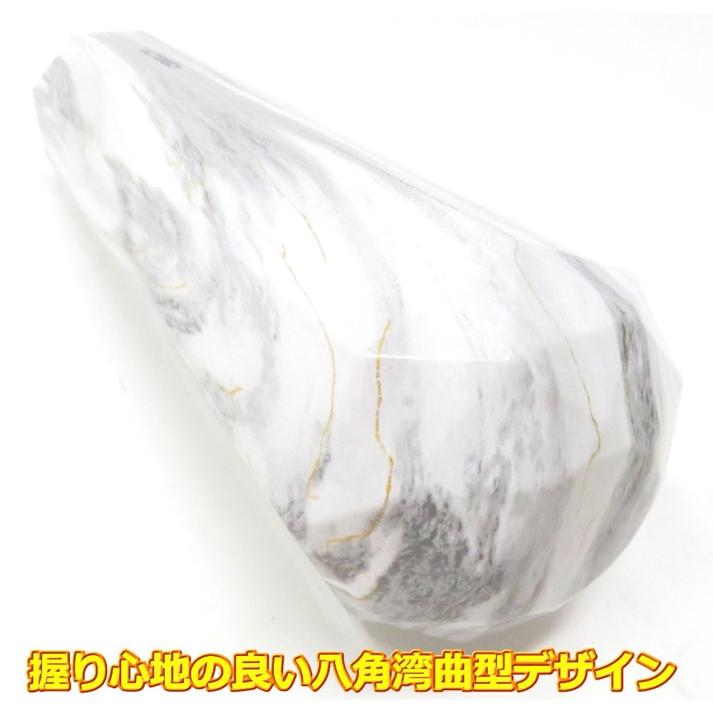 | □握り心地の良い八角形汎用シフトノブです。 □大理石調のデザインにより上品な雰囲気を演出。 □操作性の良い重厚感のある250g仕様。 □付属のアダプタ装着により、シフトバー径8mm,10mm,12mmに対応します(ピッチは各1.25)。 |