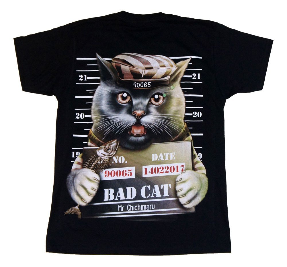 黒地にプリントされた黒猫のイラストが、まるで飛び出してくるかのように迫力満点。