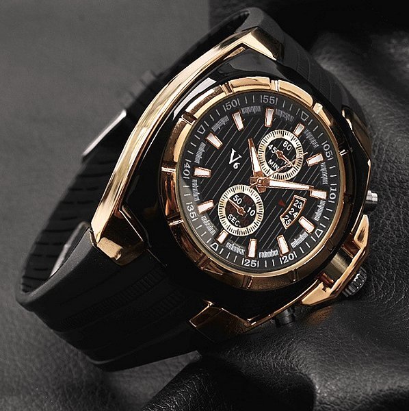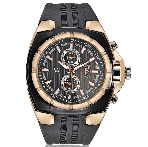 【ブランド説明】 日本未発売のブランド、V-6の腕時計になります。 こちらのブランドは現在海外で一部のオシャレピーポーに非常に人気が沸騰中でして、流行をあしらったビッグフェイスにデザイン性の高い文字盤が非常にかっこ良い腕時計ブランドです。 後に日本にも上陸する事間違いなしのブランドですので、流行を意識しつつも他の人とは違ったデザインで先取りをしたい方に是非お勧めの商品です。 クロノグラフ、カレンダーはフェイクデザインになっており、そういった遊び心も満載です。 【商品説明】 中でもこちらは現在腕時計の一つの主流となったビッグフェイスのスクエア型デザインでして、エレガントなカラー使いと男らしい無骨なデザインが合わさった存在感抜群のデザインです。 他にはない際立ったオシャレな個性的デザインが人気のモデルです。カラーはピンクゴールド×ブラックで、ベルトはラバーになります。ムーブメントはクオーツ(電池式)です。防水性は生活防水がございますので、安心してお使いいただけます。メインの時計としてももちろん、カジュアルに使用する際のセカンドウォッチとしていかがでしょうか。海外の展示会でごく少数のみ仕入れてきましたので、早い者勝ちです。 【他にも同ブランド商品、激レア商品など多数出品しておりますので、よろしければご覧下さい。】 |