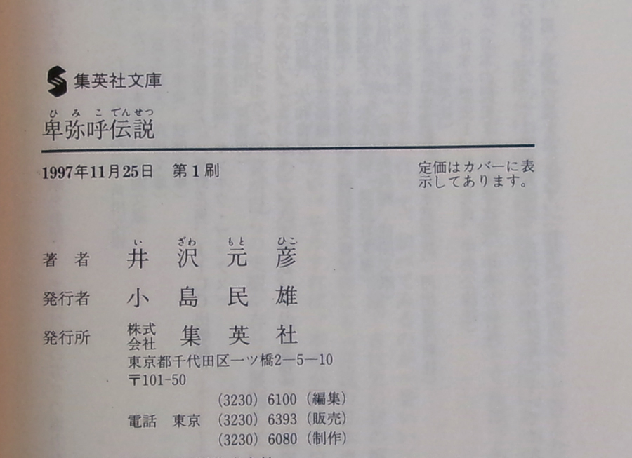 □ 卑弥呼伝説 [井沢元彦]著 1997年 第1刷 集英社文庫| 出价者 | 信用 | 价格 | 时间 |