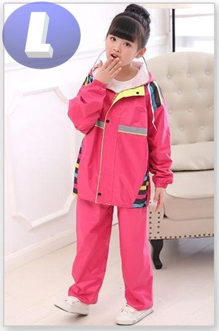レインウェア 合羽 上下 レインコート キッズ 子供用 雨具 通学 ピンク Lサイズ 143cm-153cm
