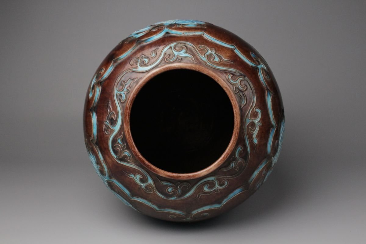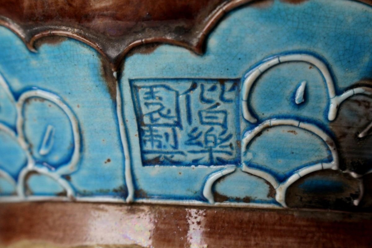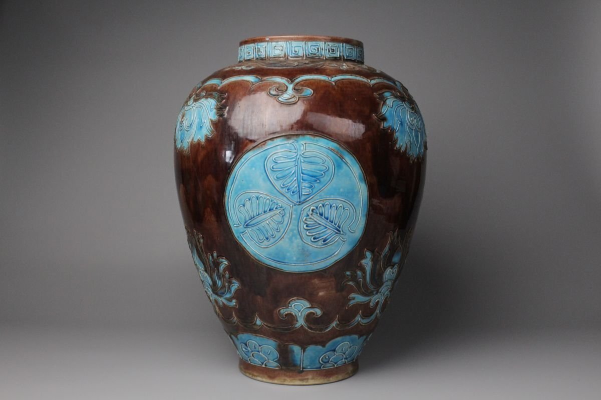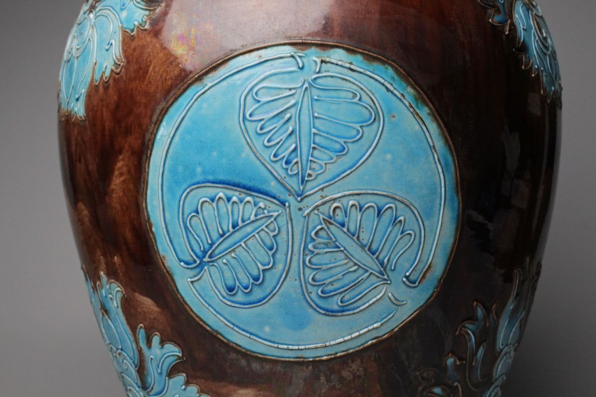 [.EE]25.09 25090905 A* * * 商品詳細 * * * ここでしか出逢うことのできない唯一の美をご紹介させて頂きます。 偕楽園焼 紫交趾壽字丸文花瓶のご紹介です。 青と紫の二彩が鮮やかに調和し、ひときわ目を惹く美しさを湛えた花瓶。 華やぎの中にも格調があり、寿字丸文の意匠が、縁起の良さと雅趣を同時に感じさせます。 偕楽園焼は、文政年間(1818~1830)、紀州藩十代藩主・徳川治宝が西浜御殿内の偕楽園において、 京都の陶工や名工・永楽保全らを招いて焼かせたことに端を発すると伝わる、由緒ある焼物です。 その歴史とともに、洗練された色彩美と高雅な意匠が響き合う逸品。 この機会に、歴史と美が融合した一品をぜひお手元にてお楽しみください。 ■サイズ/横28㎝×高35㎝ ■状態/ 経年によるスレ、小傷、汚れがございます。 ※写真にてご確認、ご了承の上ご入札下さい。