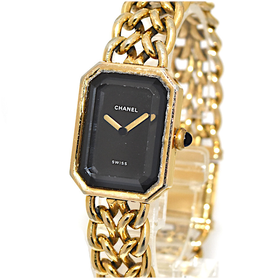 1円◇稼働品/美品/CHANEL/シャネル/プルミエールL/レディース腕時計/H0001/GP/クオーツ/ブラック文字盤◇E.Cgp.s3-19